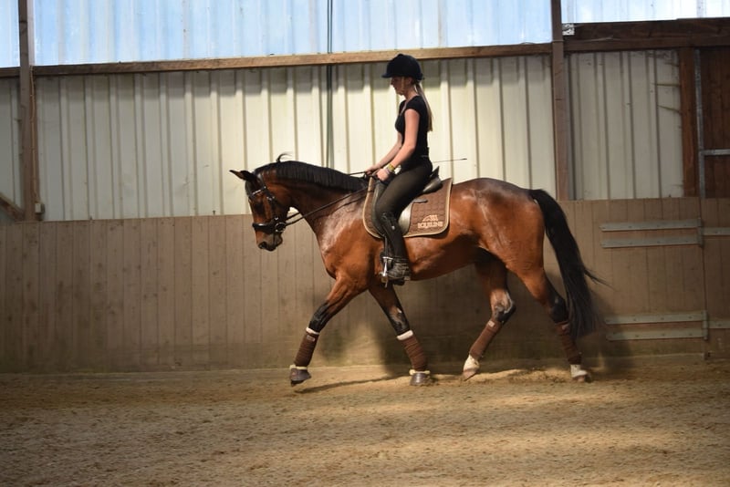 Due to time constraints from my studies, I unfortunately have to part with my beautiful, well-built gelding with a lot of go and good basic gaits. Doorigo has a lot to offer physically but can also become tense quite easily. To fully utilize his qualities, he needs a confident person who is not easily unsettled and can provide him with calmness and security. This text is very comprehensive and honestly formulated, as I wish for Doorigo to find a suitable and long-term new home! 1. Training and Care: Doorigo has been part of our family for eight years. During this time, he has been consistently exercised and trained, with the main focus on dressage riding, lunging, groundwork, walks, and also trail rides. In dressage, he performs at a secure A level and masters some L tests. In the arena, I often ride him without a saddle and occasionally with a neck ring, which he handles very well. He has always been provided with minerals, good quality hay, and daily turnout. His hooves have been regularly attended to by the farrier. The saddle has been regularly adjusted to ensure that his back muscles can develop optimally. In a familiar environment, he is very relaxed and is also suitable for beginners; however, in unfamiliar terrain, he requires a rider who can provide him with a lot of security and perhaps even takes the time to show him things from the ground first. In jumping, he masters small gymnastic jumps but requires a secure lead. Dressage is, however, his main discipline. 2. Trail Riding and Terrain: Trail riding is possible in calm weather with a safe companion horse, as long as the rider conveys trust to him and does not become unsettled in stressful situations. 3. Farrier: No problems. 4. Loading: I have occasionally loaded Doorigo for outings or external training; I have also sometimes loaded him just for practice without actually going out, so he knows it but also needs calmness and security from the accompanying person. 5. Competitions: We have taken Doorigo to competitions a few times. It has become clear that this causes him a lot of stress and little enjoyment. While there were tests in which he performed well, it is primarily important to me that a horse enjoys what it does, so he is not suitable for riders with primary competition ambitions. A small local competition should not be a problem, though. If you enjoy slowly and playfully exploring new realms without pressure and like to ride a horse with great potential, you could be the right person for him. Feel free to contact me with any further questions! Email: Lisa.kari763@gmail.com
