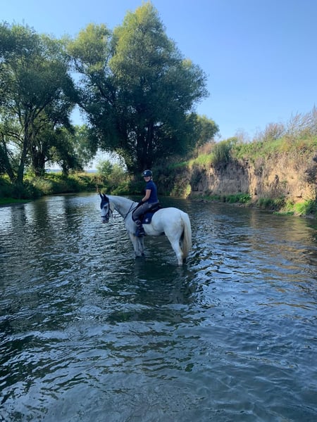 For sale is a 12-year-old grey gelding (approx. 1.65 m), who impresses with his competition successes, cross-country confidence, and excellent rideability. He is ideally suited for ambitious young riders, adult re-entrants, or those seeking high-level leisure riding with a sportive edge. 🏆 Achievements & Training: – Multiple placements and wins in A and A* jumping classes (including 1st and 2nd place at A** level) – Confidently started in L-level show jumping – Placed in dressage class A* – First experience in cross-country jumping (confident and enthusiastic over solid obstacles) – Also very interesting for fox hunters or versatile riders with competitive ambitions This 13-year-old grey gelding (approx. 1.65 m) convinces with his competition record, cross-country reliability, and superb rideability. He is perfectly suited for ambitious young riders, adult re-entrants, or those seeking refined leisure riding with a sportive focus. 🐴 Rideability & Character: – Completely reliable, suitable even for young or less experienced riders – Well-behaved in handling, uncomplicated in daily care – Safe to work with both with and without draw reins – Fearless in the cross-country field, especially alone, extremely secure, yet also confident in group rides – Load and farrier friendly, regularly vaccinated and shod A horse with an excellent character and impressive training – ideal for parents looking for a safe, supportive mount for their daughter or son, or riders who want to enjoy both competition and trail riding.