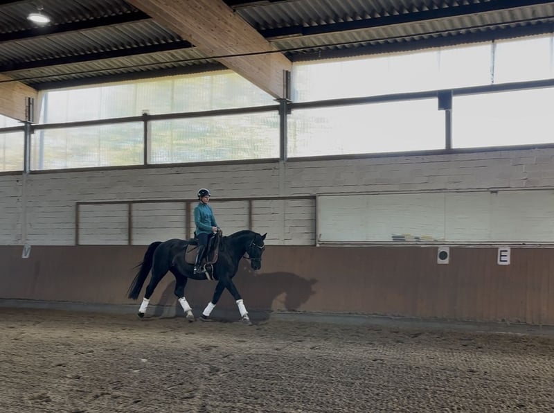 Unser charmanter Wallach überzeugt nicht nur mit seinem ausgeglichenen Charakter, sondern auch mit seiner freundlichen und menschenbezogenen Art. Er ist sowohl im Umgang als auch unter dem Sattel stets brav und unkompliziert. 🐴 Das macht ihn besonders: • zuverlässig und angenehm im täglichen Handling • sicher beim Reiten – egal ob in der Halle, auf dem Platz oder im Gelände • geht alleine oder in der Gruppe entspannt ins Gelände • vielseitig einsetzbar: Dressurarbeit, Bodenarbeit, Ausritte oder einfach gemeinsame Zeit Wir wünschen für uns für ihn ein Zuhause mit einer festen Bezugsperson in dem er gefördert, aber auch geschätzt wird. Das ist zu berücksichtigen: • Er reagiert empfindlich auf Staubbelastung und sollte dementsprechend angepasst gehalten werden. Aktuell steht der Wallach tagsüber in einer gemischten Herde draußen und Nachts in der Box. Bei Bedarf kann gegen Aufpreis gerne sein hochwertiges Equipment übernommen werden.