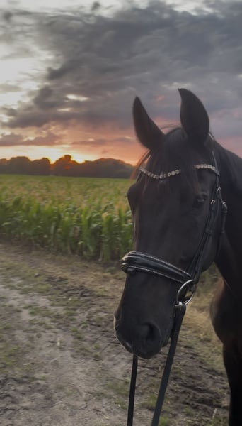 Onze charmante ruin overtuigt niet alleen met zijn evenwichtige karakter, maar ook met zijn vriendelijke en mensgerichte aard. Hij is zowel in de omgang als onder het zadel altijd braaf en eenvoudig. 🐴 Dit maakt hem bijzonder: • Betrouwbaar en aangenaam in de dagelijkse omgang • Veilig tijdens het rijden - ongeacht of in de binnenbak, op de buitenbaan of in het terrein • Gaat ontspannen alleen of in een groep het terrein in • Veelzijdig inzetbaar: dressuurwerk, grondwerk, buitenritten of gewoon samen tijd doorbrengen Wij wensen voor hem een thuis met een vaste verzorgende waar hij gestimuleerd, maar ook gewaardeerd wordt. Dit is belangrijk om te overwegen: • Hij reageert gevoelig op stofbelasting en moet dienovereenkomstig gehouden worden. Momenteel staat de ruin overdag in een gemengde kudde buiten en 's nachts in de stal. Indien nodig kan zijn hoogwaardige uitrusting tegen een meerprijs worden overgenomen.