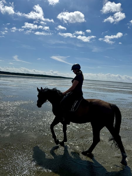 13-jähriger Hannoveraner Wallach – sucht liebevolles Zuhause Schweren Herzens habe ich mich entschieden, meinen 13-jährigen Hannoveraner Wallach Comino abzugeben. Aus zeitlichen Gründen fehlt mir leider die Möglichkeit, ihm die Aufmerksamkeit zu schenken, die er verdient. Comino ist ein sehr lieber, braver und zuverlässiger Partner, sowohl im Umgang als auch unter dem Sattel. Er kennt Reithalle, Gelände, Wattenmeer und Turnierplätze und zeigt sich überall souverän und ausgeglichen. Dieses Jahr war er mit meiner Reitbeteiligung auf Turnieren unterwegs und hat sich auch dort super brav, gelassen und unkompliziert präsentiert. Im Springen ist er bis A-Niveau ausgebildet und zeigt dabei viel Freude. Auch im Gelände ist er absolut verlässlich und immer angenehm zu reiten – ein echtes Verlasspferd, das seinem Reiter stets ein gutes Gefühl gibt. Ich kann ihn mir wunderbar als Freizeitpferd vorstellen. Er geht gern ins Gelände, ist dort entspannt allein wie auch in der Gruppe unterwegs und macht einfach Spaß – ein Pferd, mit dem man die gemeinsame Zeit wirklich genießen kann. Ich wünsche mir für ihn ein liebevolles Zuhause, in dem er regelmäßig Bewegung und Zuwendung bekommt. Sportliche Ambitionen sind für mich zweitrangig – viel wichtiger ist mir, dass er einen Menschen findet, der ihn wertschätzt und ihm ein schönes Leben ermöglicht. Trotz seines braven Charakters ist Comino kein Anfängerpferd, da er einen Reiter mit sicherem Sitz und klarer Hilfengebung benötigt. Aktuell ist Comino vorne beschlagen. Keine Allergien oder Unverträglichkeiten bekannt. Bei ernsthaftem Interesse oder Fragen freue ich mich über eine Nachricht.