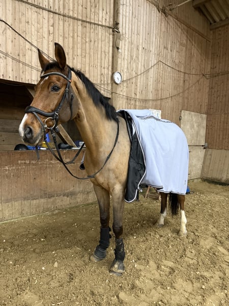 Zum Verkauf steht ein 12,5-jähriger Hannoveraner Wallach aus dem Springsport. Er wird im Juni 13 Jahre alt, gezogen aus Perigueux x Ludwig von Bayern, mit einem geschätzten Stockmaß von 1,73m. Er ist in seiner Springkarriere unter anderem Bundeschampionat gelaufen, international gelaufen und bis S* vorgestellt worden. Zuletzt hat er Azubis den Springsport gelehrt. Er ist seit November 2025 in meinem Besitz und wird freizeitmäßig Dressur geritten. Da ich selbst nicht Springe, wurde er hier lediglich mal im Beritt bis L-Niveau gesprungen und zeigte hieran immernoch große Freude! Er bringt ein ruhiges, kopfklares Wesen mit sich mit einem natürlichen Go! Trotzdem ist er nichts für Anfänger oder unsichere Reiter, da er guckig ist und dadurch eine liebevolle, ruhige Hand braucht. Aus dem Grund gebe ich ihn auch leider wieder in liebevolle Hände ab! Ich bin reiterlich nicht gut genug für ihn und kann ihm nicht die Ruhe vermitteln, die er braucht. Bei mir wird er aktuell geritten, longiert und an der Hand ans Gelände gewöhnt. Geritten bin ich ihn im Gelände noch nicht. Eine aktuelle große AKU von Ende Oktober 2025 liegt vor, inklusive 18-Standard Röntgen & Rücken. Er hat von klein auf eine Fußfehlstellung vorne rechts, dieser Huf steht zehenweit. Auf den Röntgenbildern sieht man mehrere kleinkolbige Canales sesamoidales (s.Röntgenleitfaden Nr. 2.1.a), welche laut Tierarzt durch seine Fehlstellung und Alter bedingt physiologisch ist. Zusammenfassend konnte bei der AKU keine Anzeichen für eine Gesundheitsstörung gefunden werden! Selbstverständlich kann auf eigene Kosten eine erneute AKU beauftragt werden. Er ist aktuell 4-fach beschlagen, durch seine Fehlstellung muss er laut Tierarzt vorne auch beschlagen bleiben. Er ist regelmäßig entwurmt und geimpft, aktuell auch der Chiro vorgestellt. Selbstverständlich ist er Schmiede- und Verladefromm! Zähne wurden im November 2025 gemacht. Ein gerade erst angepasster Dressursattel (12/25) und diverses Zubehör (Decken, etc.) kann bei Bedarf gerne miterworben werden. KEIN Verkauf an Händler und Reitschulen! Ich wünsche mir für ihn ein liebevolles Zuhause, wo er ankommen kann! Ich verkaufe ihn als Freizeitpferd für pferdeerfahrene und sichere Reiter, die einen tollen Partner suchen! 12.500€ VB Privatverkauf