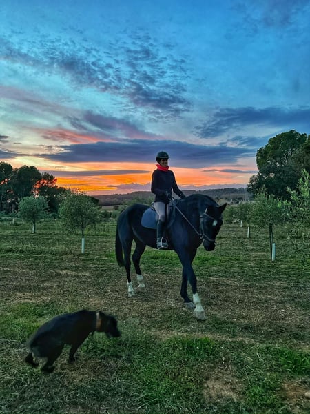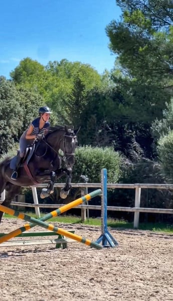 Rides out in the field twice a week. Has access to an arena and is started over 60 cm jumps.