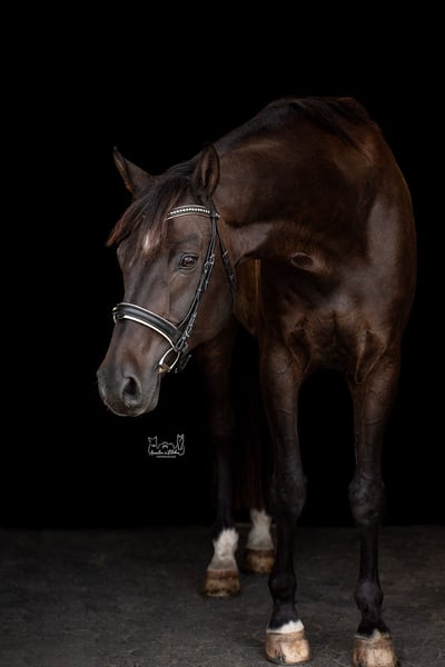 Na sprzedaż jest elegancki 14-letni zimowy ogier w kolorze czarnym od Quite Rubin x Piano II o wzroście około 175 cm. Quaid jest wyszkolony na dobrym poziomie A w ujeżdżeniu oraz skokach i jest zaprzęgany w parze. Zna regularną pracę na lonży oraz podwójnej lonży. Samodzielnie oraz w grupie wychodzi w teren. Jako koń towarzyszący chętnie i bardzo grzecznie uczestniczy we wszystkich trzech chodach. W obcowaniu Quaid jest bezproblemowy, zawsze chce zadowolić i robić wszystko dobrze. Quaid jest przytulnym i towarzyskim wałachem. Jeśli zapewnisz mu bezpieczeństwo, odwdzięczy się niezawodnością i szczerym charakterem. Ze względu na swój wzrost i wrażliwość nie nadaje się dla początkujących ani niepewnych jeźdźców. Oczywiście zna życie na „farmie” z traktorami, dziećmi, psami, ruchem drogowym itd. Obecnie jest podkowany, ponieważ nasze podłoża nie pozwalają na chodzenie bez podków. Jednak według mojego kowala zmiana na chodzenie bez podków byłaby bezproblemowa, ponieważ ma bardzo dobre kopyta. Quaid jest więc naturalnie spokojny zarówno w stosunku do kowala, jak i przy załadunku. Latem Quaid przebywa u nas 24/7 na pastwisku, a zimą w stajni otwartej w stadzie wałachów i jest raczej w niższej hierarchii. Taki sposób utrzymania chciałbym kontynuować, ponieważ jest tutaj bardzo zrównoważony i uwielbia kontakt społeczny. Alternatywnie możliwa jest także boksy paddockowe z codziennym dostępem do pastwiska. Nie będzie jednak wydawany w czystej hodowli boksowej. Nie są znane żadne wcześniejsze choroby. Quaid jest regularnie szczepiony i odrobaczany, a zęby były ostatnio kontrolowane wiosną. Szukam dla Quaida ambitnego jeźdźca rekreacyjnego, który nie ma regularnych ambicji turniejowych, ale bardziej ceni sobie wspaniałego partnera do rekreacji. Nie jest to sprzedaż w trybie pilnym, sprzedajemy z powodu zmniejszenia stanu posiadania. Miejsce przed ceną! W razie zainteresowania chętnie prześlę filmy.