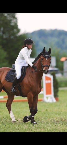 Galupy ist ein 15-jähriger Wallach mit einer Top-Ausbildung. Er weist tolle Grundgangarten auf und beherrscht alle Elemente einer M-Dressur. Mit seiner Vorbesitzerin lief er auf Turnieren bis 140 und kann Platzierungen bis 130 aufweisen. Er zeigt eine sehr gute Technik am Sprung. Für sein Alter besitzt er noch sehr viel Go. Trotz seiner Erfahrung im Parcours braucht er eine sichere Person, die ihn über die Sprünge begleiten kann. Verladen, Hufschmied, etc... ist kein Problem. Bei Interesse gerne melden!