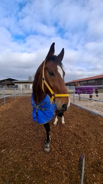Bitte vollständig lesen! Casarotti ist ein 16-jähriger Wallach, der in seiner Jugend S-platziert (mit Profi) war und mehrere M-Prüfungen (mit Amateur) gewinnen konnte. In den letzten Jahren wurde er von zwei Amateuren (ü60) geritten. Dabei zeigte er sich stets lektionssicher (2er-Wechsel, Traversalen), jedoch gelegentlich etwas umweltorientiert. Daher suchen wir für ihn einen sicheren und sattelfesten Reiter, der ihn ruhig und konsequent begleitet. Führmaschine, Hängerfahren und Paddock meistert er problemlos, im täglichen Umgang ist er freundlich und zuverlässig. Aufgrund seines altersentsprechenden Gesundheitszustands sehen wir ihn nicht mehr als vollwertiges Turnierpferd, sondern eher im ambitionierten Freizeitbereich mit gelegentlichen Starts in niedrigen bis mittleren Klassen. Casarotti wird schweren Herzens verkauft, da meine Eltern mit über 60 nicht mehr die nötige Beweglichkeit und Sattelfestigkeit haben, um sein gelegentliches Umdrehen sicher auszusitzen. Nach 12 Jahren bei uns wünschen wir uns für ihn ein wirklich gutes neues Zuhause – Platz vor Preis.“ Aktuell ist er in Profi-Beritt und kann jederzeit probegeritten werden. In Kürze: * S-platziert, M siegreich, aktuell in Profi-Beritt. * Lektionssicher & zuverlässig im Umgang. * Etwas umweltorientiert → braucht sattelfesten, ruhigen Reiter. * Ideal als ambitioniertes Freizeitpferd mit kleinen Turnierambitionen.