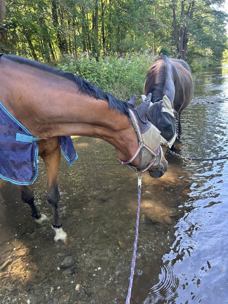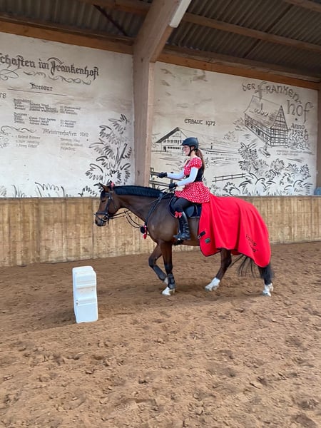 Hola, mi nombre es Flirty y cumplí 16 años en julio. Soy un caballo de mano, cariñoso, que adora a los niños, tranquilo para la herradura y la carga en el remolque, y siempre dispuesto a divertirse. Mi pequeña familia busca un nuevo hogar para mí porque actualmente no tienen suficiente tiempo y les gustaría encontrar a alguien que pueda dedicarme tiempo, salir conmigo a pasear por el campo y disfrutar haciendo trabajo en tierra conmigo. Debido a mis kissing spines, es importante que mi musculatura dorsal se mantenga estable, por lo que NO soy un peso para llevar. Puedo ir al campo solo o en grupo. Además, me encantan los niños y el tráfico en la calle no me supone ningún problema. Por la noche necesito un box para poder descansar, y durante el día, mucho espacio para moverme y hacer ejercicio. Si te gusta trabajar en tierra, quieres darme variedad con salidas al campo, puedes ofrecerme un box por la noche y mucho espacio para correr durante el día, ¡entonces no dudes en ponerte en contacto con mi familia! No es una venta de emergencia y antepone siempre el bienestar del caballo al precio. Flirty solo será entregado a las mejores manos. ¡Estoy encantado de responder a todas tus preguntas sobre él!