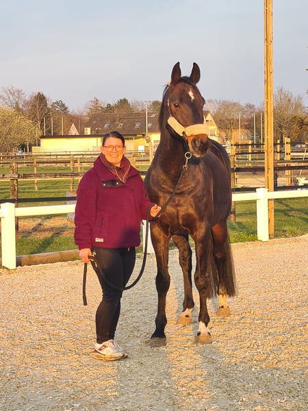Zum Verkauf steht ein 17-jähriger Hannoveraner Wallach, der als motiviertes Freizeitpferd einen neuen Wirkungskreis sucht. Er ist ein sehr menschenbezogenes, verschmustes Pferd, das den Kontakt zum Menschen genießt. Im Umgang ist er freundlich und unkompliziert. In der Herde zeigt er sich sozial und verträglich. Als Freizeitpferd bringt er unter dem Sattel ordentlich Go mit und möchte beschäftigt werden. Daher ist er kein Anfängerpferd und wird nur in erfahrene Hände abgegeben. Er braucht einen sicheren Reiter, der ihm Ruhe und klare Führung gibt. Daten: Hannoveraner Wallach 17 Jahre Stockmaß: 1,66 Freizeitpferd herdenverträglich sehr menschenbezogen & verschmust mit Go / kein Anfängerpferd Weitere Infos: Sattel und komplette Ausrüstung werden mitgegeben vorne beschlagen (Eisen) Zähne zuletzt im Herbst kontrolliert regelmäßig osteopathisch betreut regelmäßige Bodenarbeit & Longieren Training u. a. mit tensegralem Ansatz begonnen Ich habe ihn mit einer Freundin in 10/2025 gekauft. Leider passen wir nicht so gut zusammen und suchen daher ein liebevolles neues Zuhause mit Pferdeverstand. Weitere Infos gerne auf Anfrage. Probereiten nach Absprache (wenn möglich ab 17 Uhr) möglich.