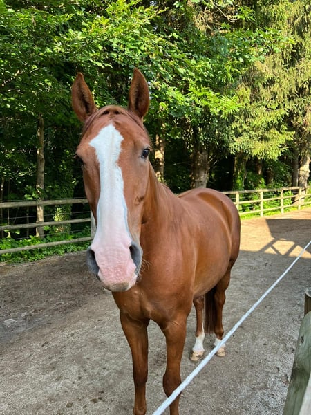 C'est avec le cœur lourd que je cherche une nouvelle famille aimante pour mon hongre Hannoverien de 17 ans. Il mesure environ 1,76 m et a été monté exclusivement en loisirs par mes soins. Caractère et comportement : Un hongre absolument adorable, fiable et très proche de l’humain, qui se montre amical et facile à vivre au quotidien. Il aime l’attention, est bien dressé en manipulation et apprécie toute forme d’activité. Santé et utilisation : Il souffre d’arthrose au niveau du tarse gauche, ce qui limite ses capacités de monte, mais il peut continuer à être travaillé en loisir. Un exercice régulier lui fait du bien. Un paddock ou au moins beaucoup de paddocks serait idéal pour lui. Le lieu idéal : Un endroit où il sera toujours choyé, où il pourra recevoir un travail léger et simplement être un cheval. Pas de compétition ni d’ambitions sportives élevées – juste un compagnon pour des balades relaxantes, du travail à pied ou une activité légère. Autres informations : - Hongre Hannoverien - 17 ans - Environ 1,76 m - Cheval de loisir - Priorité au bien-être, pas au prix ! Si vous êtes intéressé ou si vous avez d’autres questions, n’hésitez pas à me contacter.