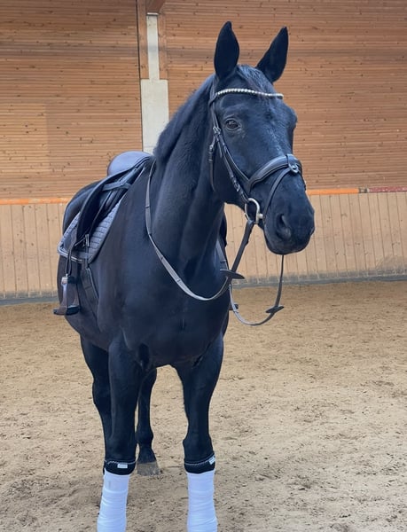 Sanvador is the horse you could only wish for. He has a balanced, calm, and incredibly friendly temperament. In handling, he is well-behaved, affectionate, and completely reliable. He enjoys any form of attention. He is a loyal soul, people-oriented, and sensitive, always striving to do everything correctly. Under saddle, he consistently shows willingness to work: he handles dressage, as well as cavaletti and small jumps, patiently. He is suitable for children and remains reliable even with less experienced riders. In the field, he is very confident and shows himself to be traffic and nerve-proof. Sanvador is regularly presented to the farrier and the dentist, and a current blood test is available and unremarkable. He has no bad habits such as kicking, biting, or rearing. He also shows his best side during transport: he is trailer- and loading-trustworthy. In the herd, he is compatible and social, but he does not feel comfortable in an open stable – therefore, we are looking for a box with paddock or paddock access, along with regular turnout. We are reluctantly offering him for sale due to family reasons and wish for a home that treats him with as much love as we do – ideally a family or people without tournament ambitions who are seeking an honest recreational partner. Accessories are included, and I am happy to send videos upon request. Priority goes to a good home over price.