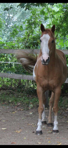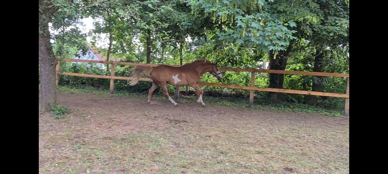 Hiermit biete ich meinen Wallach Latino zum Verkauf an. Er ist gesund und voll belastbar. Regelmäßig beim Schmied, aktuell Barhuf. Regelmäßig entwurmt und ist geimpft. Geb. 2007 Stockmaß: 1,53m Ausbildungsstand: A-Dressur / A-Springen Geht alleine und in der Gruppe ins Gelände, kennt Geländehindernisse und liebt es durch Wasser zu gehen. Er ist sensibel und fein zu reiten, läuft auch brav mit Halsring verfügt jedoch über Go. Er kennt und liebt vielseitige Beschäftigung, genießt die Nähe zum Menschen. Ich würde ihn nur abgeben, damit er die Chance hat noch mehr erleben zu dürfen. Er ist voller Energie und möchte noch vielseitig gefordert werden. Sein alter merkt man ihm nicht an. Leider werde ich ihm, aus gesundheitlichen Gründen meinerseits, nicht so gerecht wie ich es mir wünschen würde. Seine Ausrüstung ist Inklusive (Kieffer Dressursattel, Trense, Decken usw) Bei entsprechender Auslastung lässt er sich brav von Kindern und Anfängern reiten. Nur in gute Hände abzugeben, gerne melden und kennenlernen. LG