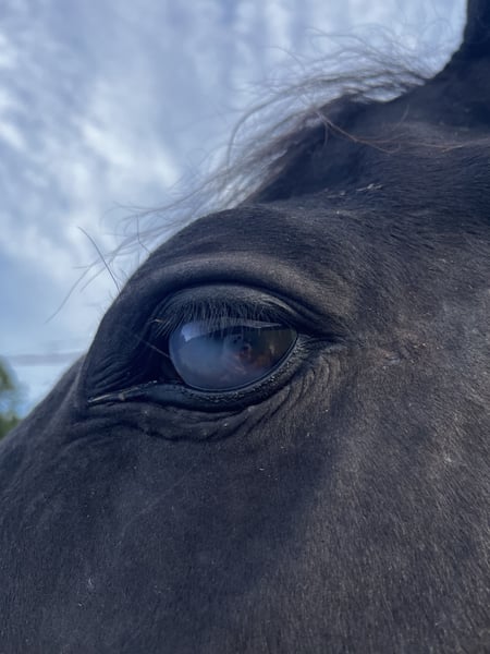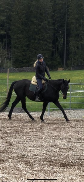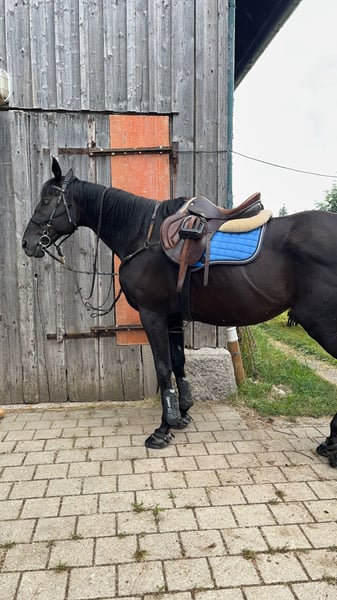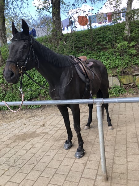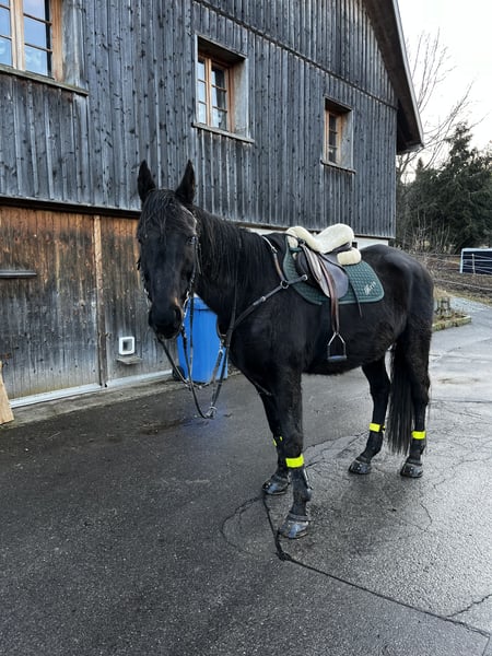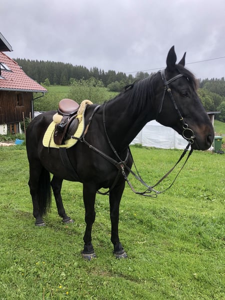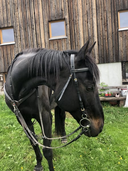 Brio ist ein super liebenswerter Kerl. Er ist verschmust und hat Spaß daran etwas mit seinem Menschen zu unternehmen. Momentan steht er in einem Offenstall mit 5 weiteren Pferden. Dort zeigt er sich als relativ rangniedrig. Vor zwei Jahren führte eine Augenentzündung dazu, dass eines seiner Augen eine Trübung auf der Hornhaut aufweist . Sein Sichtfeld ist dadurch beeinträchtigt, jedoch stört er sich nicht daran. Zur Zeit wird er freizeitmäßig im Gelände wie auf dem Platz geritten.