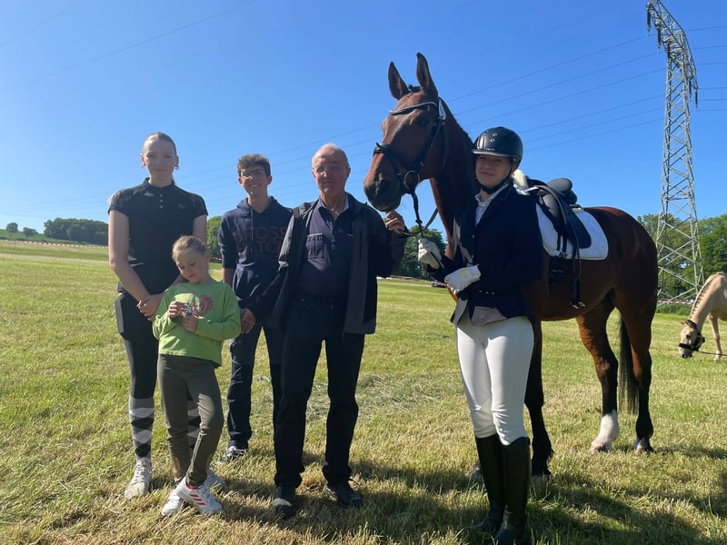 Elegant Hanoverian gelding for sale! Up for sale is a beautiful dark brown Hanoverian gelding, born in 2004. Standing an impressive 17.7 hands, he impresses with his elegant appearance and pleasant temperament. Despite being 19 years old, he remains in top form and is eager to continue his training. Due to health and family reasons, it is unfortunately no longer possible for me to give him the attention he deserves. This versatile dressage partner has a solid basic education and impresses with his willingness and eagerness to learn. He is confident and fearless in the terrain and always motivated. He is suitable for advanced riders and can also serve as a family horse to nurture young riders. However, I do not want to sell him as a “sport horse,” despite his good training. If interested, I am happy to provide further information and arrange a viewing. To counteract riding tourism, I will charge €25 for a trial ride, which will be deducted from the purchase price.