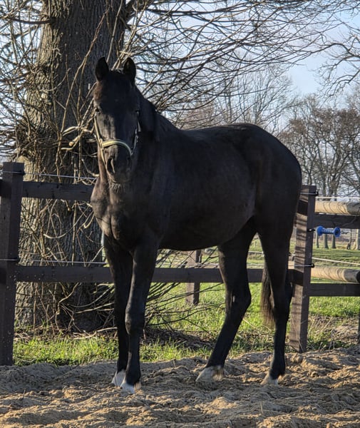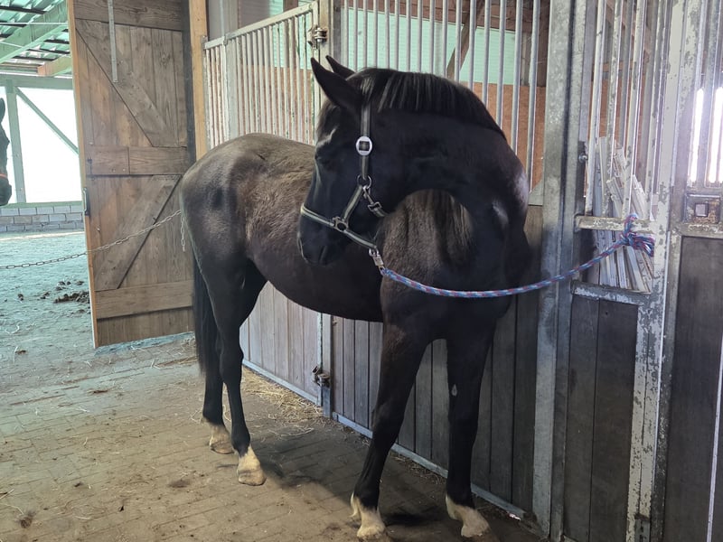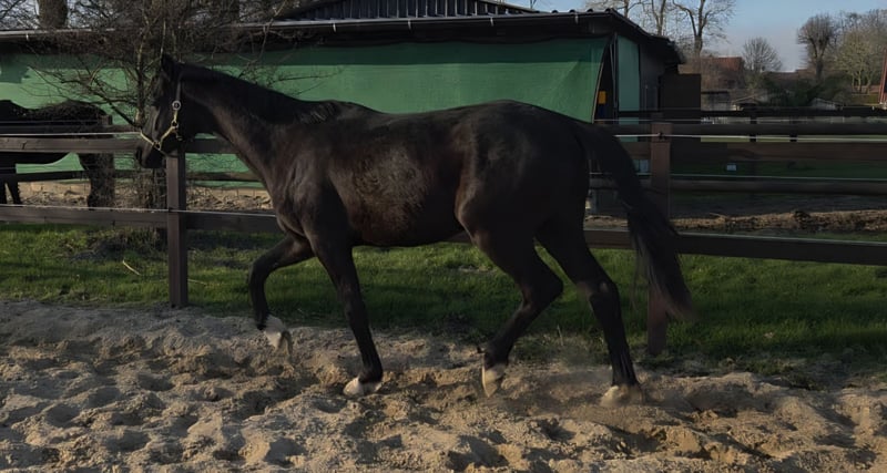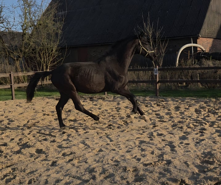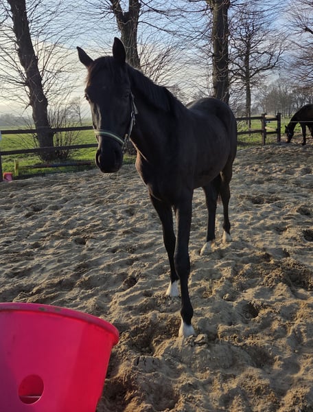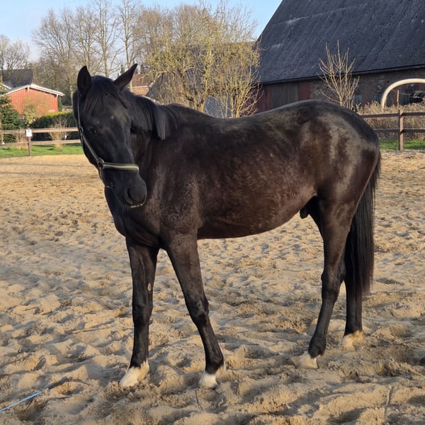 Biete hier im Auftrag einen 2 jährigen Hannoveraner Wallach an. Er ist sehr menschenbezogen, er möchte am liebsten immer betüdelt und gekrault werden er ist im Umgang wirklich ein Schatz ist auch an neuen Dingen immer sehr interessiert. Lässt sich anbinden, putzen und Hufe geben ist kein Problem für ihn, ist geimpft und entwurmt und die Zähne wurden gemacht. Er kommt momentan Nachts in die Box und tagsüber im Offenstall mit anliegenden Paddock. Hufe werden demnächst wieder gemacht. Er stammt ab von Fanegro/ Dancier und ist geboren am 3.3.24 ist ein Rappe mit 4 weissen Fesseln und wird um die 170 cm groß. Er wird sicherlich ein toller Freizeitpartner. Wegen eines Schönheitsfehler unter dem Wert zuverkaufen (Übergebiss). Bilder sind ganz Aktuell