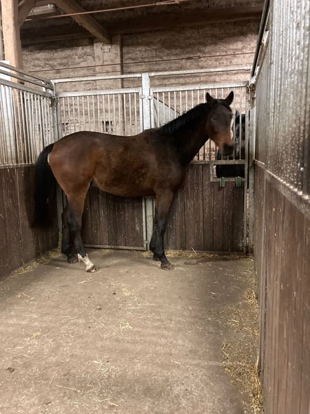 Hannoveraner Wallach, braun, geb 2023, WH 1,72m, noch roh, gutartiger Charakter, korrektes Fundament