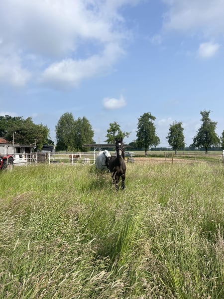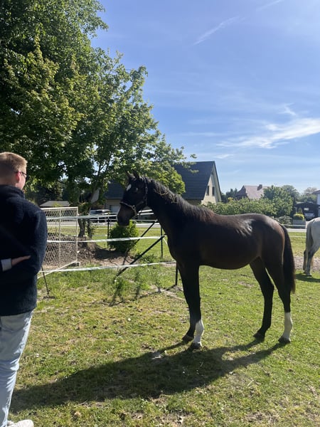 Vielversprechender Hannoveraner Spring-Wallach mit Top-Abstammung – Nachwuchspferd für den großen Sport Zum Verkauf steht ein äußerst typvoller Hannoveraner Wallach, geboren am 31.05.2024, abstammend von Chubakko aus einer Quaid – Gralshüter – Pinocchio Mutterlinie. Dieser junge Wallach vereint eine hochinteressante Springgenetik mit besten Aufzuchtbedingungen und bringt alles mit, um sich perspektivisch im Springsport zu entwickeln. Er ist in einer kleinen, sozial stabilen Herde bei uns Zuhause aufgewachsen und verbringt täglich viele Stunden im Freien. Eine artgerechte Aufzucht mit durchgehendem Zugang zu Heu sowie abgestimmter Mineralfutterversorgung bildet die Grundlage für seine gesunde Entwicklung. Entsprechend zeigt er sich ausgeglichen, menschenbezogen und sozialverträglich. Bereits jetzt überzeugt er mit vielversprechenden Grundgangarten, besonders hervorzuheben ist sein groß angelegter, bergauf gesprungener Galopp, der ihn klar als zukünftiges Springpferd erkennen lässt. Im täglichen Umgang präsentiert er sich unkompliziert und altersgerecht: • kennt das Halfter • kennt Hufe geben und Putzen • ist artig beim Hufschmied • einmal Anhänger gefahren (noch wenig Erfahrung, altersentsprechend) Ursprünglich als eigenes Nachwuchspferd vorgesehen, wird er nun ausschließlich aufgrund privater Veränderungen abgegeben. Gesucht wird daher ausdrücklich ein 5-Sterne-Zuhause, in dem er weiterhin schonend, pferdegerecht und mit Zeit aufgebaut wird und im Mittelpunkt stehen darf. Da uns sein zukünftiges Zuhause sehr am Herzen liegt, freuen wir uns über eine kurze Vorstellung von Ihnen, Ihrer Pferdeerfahrung sowie den geplanten Haltungsbedingungen. Weitere Informationen gerne auf Anfrage. Standort Minden