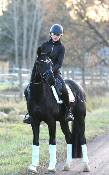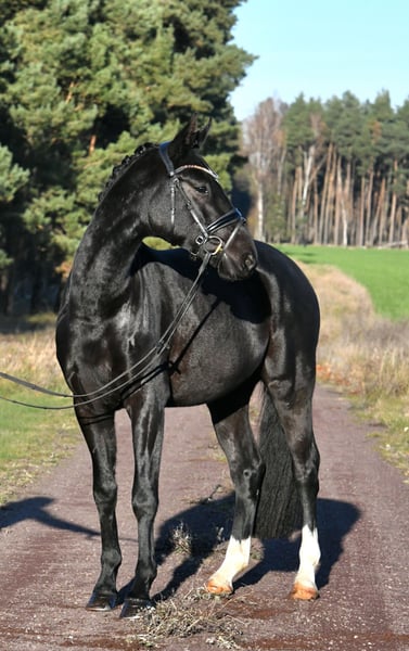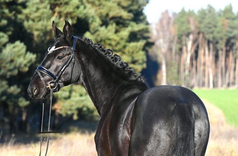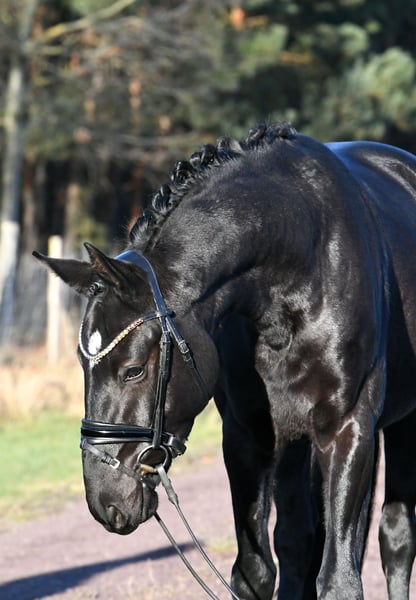 Wer mag es schwarz und rittig ? Hier kommt unser " Rawenclaw" , ein Sohn des Grand Prix siegreichen Vererbers Rassolini aus einer Surprise- Desperados Mutter - hier kommt alt bewährtes Dressurblut zum Einsatz ! " Rudi " ist seit dem Spätsommer bei uns in Grundausbildung, er wurde schonend angeritten und kann nun in Halle und Gelände geritten werden. Er zeigt sich stets motiviert mit Go ausgestattet, ist dabei immer händelbar . Tolle, solide Grundgangarten runden seine positiven Eigenschaften ab- ein perfektes Ausbildungspferd! Ein sehr guter TÜV aus 2024 ist vorhanden, kann aber auf Wunsch noch mal aktuell gemacht werden. Im Umgang ein Schatz, unkompliziert mit anderen Pferden, kann auch mit Stuten zusammen stehen. Rudi kommt direkt vom Züchter und freut sich auf ein tolles neues Zuhause, wo er die Nr. 1 sein kann ! Tolles handliches Format , ideales Umsteigerpferd/ XXL Pony /Juniorenpferd!