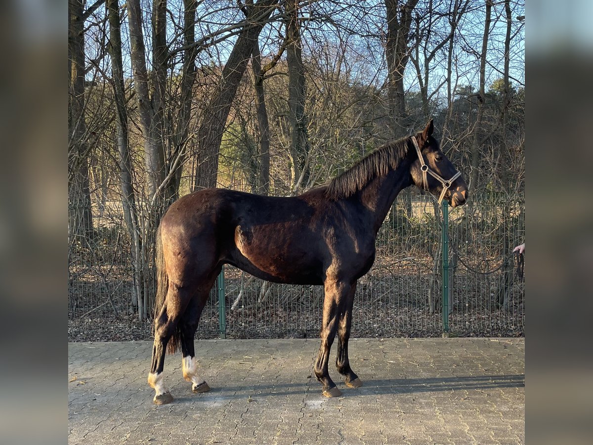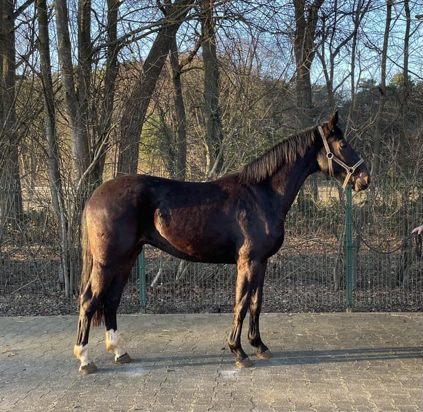Sehr schicker moderner Typ, jetzt 3-jährig gewordener schwarzbrauner Wallach mit drei sehr guten GGA, er kennt noch nicht viel da er vor kurzem aus einer kleinen Herde und den Stall reingekommen ist. 1,66m groß und lieb im Umgang.