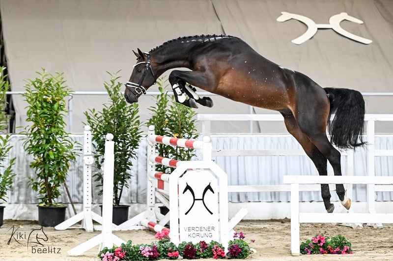 Este potro joven impresiona por su carácter muy agradable, su excelente actitud y todas las capacidades para saltar. Destaca por su técnica, talento e inteligencia. En nombre de su criadora, este joven busca un hogar que lo apoye y fomente su desarrollo. Cuenta con radiografías de buena calidad disponibles. Su calidad deportiva no es casualidad, como se puede ver en su pedigrí: Su padre, Cha Cha-H, es hermano de nada menos que Halifax van het Kluizebos, hijo de Heartbreaker, quien ganó numerosos Grandes Premios y fue el mejor caballo de salto del mundo en 2017 con Lorenzo de Luca. La madre, la abuela y la bisabuela de este potro han producido todos caballos de cría aprobados, que han tenido gran éxito en saltos de 1,50 m. Su padre, Chacco-Blue, fue ganador en saltos de 1,60 m bajo la monta de Andreas Kreuzer y encabeza la lista de reproductores WBFSH. Por parte materna, destaca Calido, uno de los sementales más influyentes de su época. Calido I fue ganador de la prueba de selección en la HLP y ganó 25 concursos de saltos, incluyendo la final del Campeonato Federal. Su sobresaliente valor genético, que le ha asegurado una posición destacada durante años, se refleja en los éxitos de sus descendientes. Entre sus ejemplares más destacados se encuentran King van Essene/Thibeau Spits (BEL), KM Chalcedon/Jur Vrieling (NLD), Charley/Johnny Pals (NLD), ganador de la Copa de Naciones, campeón de Alemania en 2006 y 2007 con René Tebbel, Nobless M, participante olímpica, ganadora de Grand Prix en Helsinki y La Coronia con Pius Schwizer, Eurocommerce Acapulco con Gerco Schröder (NLD), y muchos más. Calido es especialmente valioso también como padre de madres: los descendientes de yeguas de Calido I han acumulado ya más de 5 millones de euros en premios. ¡Video disponible bajo petición!