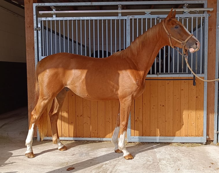 Due to a reduction in stock, we are selling our home-bred 2-year-old gelding by Baloutaire PS x Monte Bellini x Severus XX. He was castrated in winter 2024, has grown up in the herd so far, is farrier-friendly and loading-friendly, leads well in a halter, and is familiar with free jumping, tractors, dogs, etc. Current height is approximately 1.68 m with a strong build. Due to his striking color and very good basic gaits, he is also suitable for dressage sports. His mother has successfully competed up to S* level in show jumping, his half-sister is already placed S* at the age of 8, and his full brother impressed in his first competition season with several placements in show jumping tests. Current veterinary check is available.