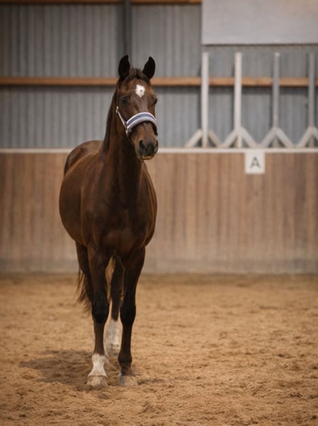 Te koop staat een uitzonderlijke jonge ruin geboren op 18 april 2023 Afstamming: Bonds x Dagostini x Rotspon Al als veulen wist hij zich duidelijk te onderscheiden van de concurrentie: • Winnaar veulenkampioenschap in zijn categorie op de veulenschouw • Overall tweede plaats op het hele evenement met waarderingen tussen 8 en 9 voor type, beweging en indruk Een echte blikvanger met substantie en uitstraling – nu al een sportpaard met présence. Deze verfijnde ruin combineert topgenetica met een uitstekend karakter en groot sportpotentieel. Hij is afkomstig van de gerenommeerde hengst Bonds, een donkerbruine uitblinker met een stokmaat van 1,70 m, die overtuigt door zijn ruime, elastische basisgangen en hoge rijbaarheid. Bonds behaalde zijn sporttest in 2017 in Münster met een totaalscore van 9,12, inclusief een perfecte 10,0 voor de galop – een uitzonderlijk resultaat dat zijn buitengewone talent onderstreept. De moeder, onze premievolle merrie Donna (Dagostini x Rotspon x World Cup), valt op door haar edele verschijning en haar prachtige gangkwaliteiten. Donna belichaamt een harmonieuze mix van elegantie, bereidheid tot presteren en een evenwichtig temperament, eigenschappen die ze ook doorgeeft aan haar nakomelingen. Karakter: De jonge ruin is vanaf de geboorte opgegroeid in een stabiele veulengroep en staat momenteel samen met zeven leeftijdsgenoten – de beste basis voor een goede socialisatie. Hij beschikt over een evenwichtig, nieuwsgierig karakter en is altijd ontspannen en vriendelijk in omgang. Hij kent de basis van het veulenschooltje en is al halster- en trailer-gewend. Stallen, paddock en wei zijn hem vertrouwd. Het regelmatige bezoek aan de hoefsmid verloopt probleemloos en stressvrij. Deze combinatie van veelbelovende afstamming, gezond sociaal gedrag en goede basisopleiding maakt hem tot een ideaal partner voor ambitieuze dressuursporters. Wij zien in hem: Een absoluut uitzonderlijk veulen met uitstekende voorwaarden voor de dressuur of veelzijdig gebruik. Dit paard belooft een succesvolle toekomst. Prijs: wij maken graag eerlijke aanbiedingen! Bij interesse of vragen hoor ik graag van u!