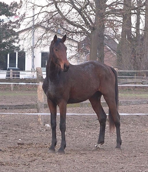 Eldermann, geb. am 29.04.2023, ist ein bildschöner brauner Wallach mit einem sehr lieben und freundlichen Wesen, besticht durch seine immer leichten und lockeren Bewegungen, einer kraftvolle Hinterhand und einer tollen Bergaufgaloppade. Er ist aus dem 1.Jahrgang des herausragenden Prämienhengst Escaneno, der 2022 seine Kurz-Veranlagungsprüfung mit der gewichteten Endnote 9,03 absolvierte. Auch seine Mutter von Borsalino und seine Großmutter Hannoveraner Prämienstute Desidera von Desiderio x Weltmeyer müssen sich nicht verstecken. Sein 1 Jahr jüngerer Vollbruder erhielt die Hannoveraner Goldprämie. Drei Geschwister der Mutter wurden als Fohlen über die Elite-und Fohlenauktion des Klosterhof Medingen verkauft unter ihnen auch das Siegerhengstfohlen der Fohlenschau 2021 des Klosterhofs, der auch schon zahlreiche Platzierungen bis zur Dressurpferde L vorweisen kann. Desweiteren stammt er aus dem sehr alten Stutenstamm der Jablunka von 1883 aus dem unter anderem die gekörten Hengste Quintessential, Laudabilis und Edinburgh und der bis St. Georg erfolgreiche Weltgraf II stammen. Aus dem direkten Stutenstamm gehen mehrere Staatsprämien, Auktionsfohlen und sportlich Erfolgreiche Nachkommen hervor, die allesamt durchweg klar im Kopf, leichtrittig und leistungsbereit sind. Röntgenbilder vom 24.03.26 inklusive Hals und Rücken liegen vor und auch die Zähne wurden am 11.03 gemacht. Aufgrund von Röntgenbefund wird Eldi unter Wert aber der Qualität entsprechend angeboten.