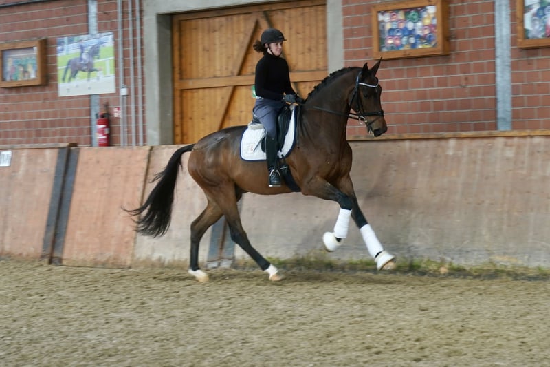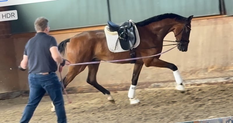 Ideal fürs große Viereck ! Zum Verkauf steht ein beeindruckender Hannoveraner Wallach, geboren im Jahr 2022. Mit einem Stockmaß von ca. 176 cm und seiner eleganten braunen Fellfarbe zieht er alle Blicke auf sich. Dieser talentierte Wallach zeigt großes Potenzial im Dressursport und eignet sich hervorragend für ambitionierte Reiter, die ein vielseitiges und lernwilliges Pferd suchen. Seine ruhige und ausgeglichene Art macht ihn zu einem idealen Partner für Training und Turniere. Er ist noch am Anfang seiner reiterlichen Karriere, brav im Umgang und verfügt über ein einwandfreies Wesen. Top Grundgangarten - überragender Galopp , super Charkter. Bei Interesse oder weiteren Fragen stehe ich Ihnen gerne zur Verfügung. Lassen Sie sich diese Gelegenheit nicht entgehen, einen so vielversprechenden Pferd zu erwerben!