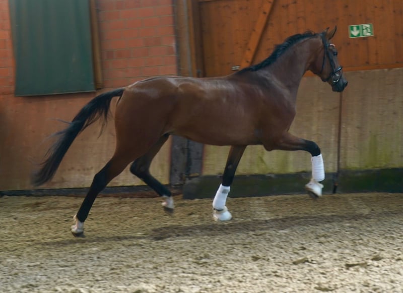 Te koop is een indrukwekkende Hannoveraanse ruin, geboren in 2022. Met een schofthoogte van ongeveer 175 cm en zijn elegante bruine vacht trekt hij alle aandacht. Deze getalenteerde ruin toont groot potentieel in de dressuursport en is uitermate geschikt voor ambitieuze ruiters die op zoek zijn naar een veelzijdig en leergierig paard. Zijn rustige en evenwichtige aard maakt hem tot een ideale partner voor training en wedstrijden. Hij staat nog aan het begin van zijn carrière, is braaf in de omgang en heeft een onberispelijk karakter. Top basisgangen - uitmuntende galop, super karakter. Bij interesse of verdere vragen sta ik graag tot uw beschikking. Mis deze kans niet om zo'n veelbelovend paard aan te schaffen!