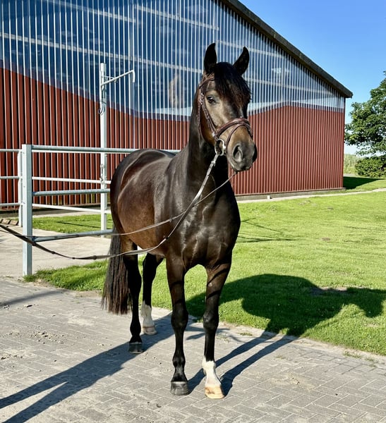 Zum Verkauf steht „Harry“, ein Hannoveraner Wallach (*2022) von For Romance I x Dimaggio, der nicht nur durch seine besonders freundliche und interessierte Art besticht, sondern auch durch seine drei sehr guten GGA auffällt. Harry ist bei mir geboren, seine Mutter ist die Hannoveraner Prämienstute „Dark Girl“, die einen ebenso guten Charakter und Bewegungspotential mitbringt. Als Fohlen wurde er vom Hannoveraner Verband mit der Verbandsprämie ausgezeichnet. Er ist absolut unkompliziert und unerschrocken im Umgang. Anbinden, putzen, satteln & trensen, longieren und Hufschmiedbesuche sind kein Problem für ihn. Zudem bewahrt er auch immer die Ruhe, wenn er zB mal allein auf der Stallgasse ist. Aufgrund meiner Schwangerschaft konnte ich den nächsten Schritt seiner Ausbildung noch nicht gehen. Dementsprechend ist er bisher nicht angeritten. Mit seiner ausgeglichenen Art und der bisherigen Vorarbeit wäre das aber sofort möglich. Harry ist sehr verträglich mit anderen Pferden, stand bei uns im Sommer immer 24/7 in einer Herde auf der Weide und geht momentan täglich in einer Gruppe auf den Paddock. Ich gebe ihn nur in Hände mit langfristiger und pferdegerechter Perspektive ab. Harry war bei mir nie krank oder lahm, wird aber leider aufgrund eines röntgenologischen Befundes unter Wert verkauft. Bei Interesse kann ich die Röntgenbilder gerne zusenden. Tel. 01726113342