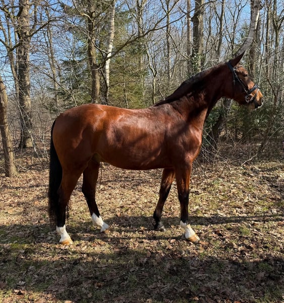 Hannoveraner Wallach – Vielversprechender Nachwuchs für die Dressur Dieser charmante Braune Hannoveraner Wallach wurde im Jahr 2022 geboren und überzeugt durch seine vielversprechende Abstammung sowie sein edles Erscheinungsbild. Mit einem Stockmaß von 163 cm bietet er die ideale Größe für ambitionierte Reiter, die Wert auf Qualität und Potenzial legen. Der junge Wallach ist bereits gut an den Reiter gewöhnt und zeigt sich im Umgang äußerst freundlich und lernwillig. Seine rassetypische Eleganz und sein ausgeprägtes Bewegungstalent machen ihn zu einem vielversprechenden Dressurpferd für den gehobenen Amateur- oder Turnierreitsport. Seine solide Grundausbildung wurde behutsam aufgebaut, und er zeigt bereits erste vielversprechende Ansätze in der Dressurarbeit. Mit seinem harmonischen Bewegungsablauf und seinem angenehmen Charakter ist er ein zuverlässiger Partner, der sich optimal für den Aufbau einer erfolgreichen Dressurkarriere eignet. Ein Pferd mit großem Entwicklungspotenzial, das sowohl durch seine Qualität als auch durch seine freundliche Art überzeugt. Für weitere Informationen und einen persönlichen Eindruck stehe ich gerne zur Verfügung. Video kann telefonisch per Whatts App angefordert werden.