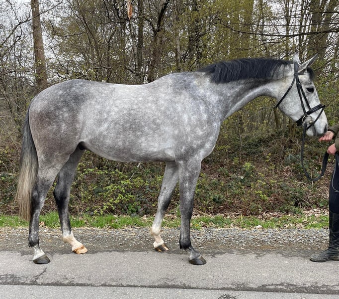 For sale is a promising 4-year-old grey gelding with excellent jumping talent. He has already impressed with a score of 8.0 in a free jumping competition. He is backed and jumps a small course under saddle, consistently showing motivation and plenty of "go." In daily handling, he is straightforward, well-behaved at the blacksmith, and loads easily. Pedigree: Casino Berlin x Contagio. An interesting horse for ambitious riders looking to further develop a talented young jumper. If interested, we look forward to hearing from you.
