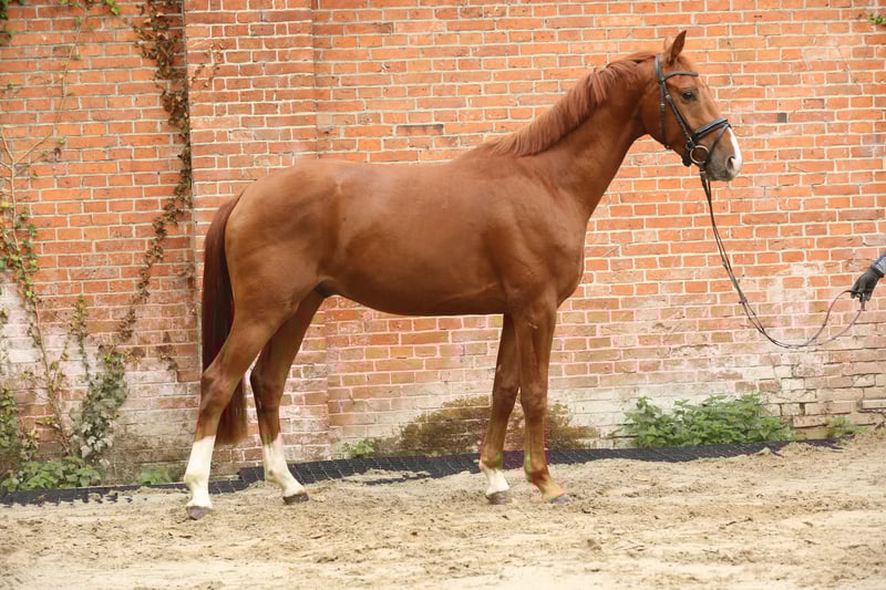 Valente is simply a horse you can't help but love. He is already well-schooled and, after a brief lunging session, you can mount him without assistance and confidently start riding in all three gaits. No matter how busy the riding arena or how much activity there is on the farm, Valente remains a cool and composed “guy” who doesn't get easily flustered. He is already familiar with small riding outings in the outdoor arena, accompanied by a partner horse. He has always been reliable and relaxed in these situations. Valente also knows how to free jump, which seems to bring him joy. With further training, jumping will undoubtedly become a welcome variation for him. Thanks to his excellent riding qualities and his three good basic gaits, he is well on his way to competing in Dressage Horse Class A. His light-footedness, high rider comfort, straightforward nature both in riding and handling make him an ideal youth or amateur horse right now—whether for competitive ambitions or simply for leisure riding at home. With Valente, anything is possible. Good X-ray results are available.