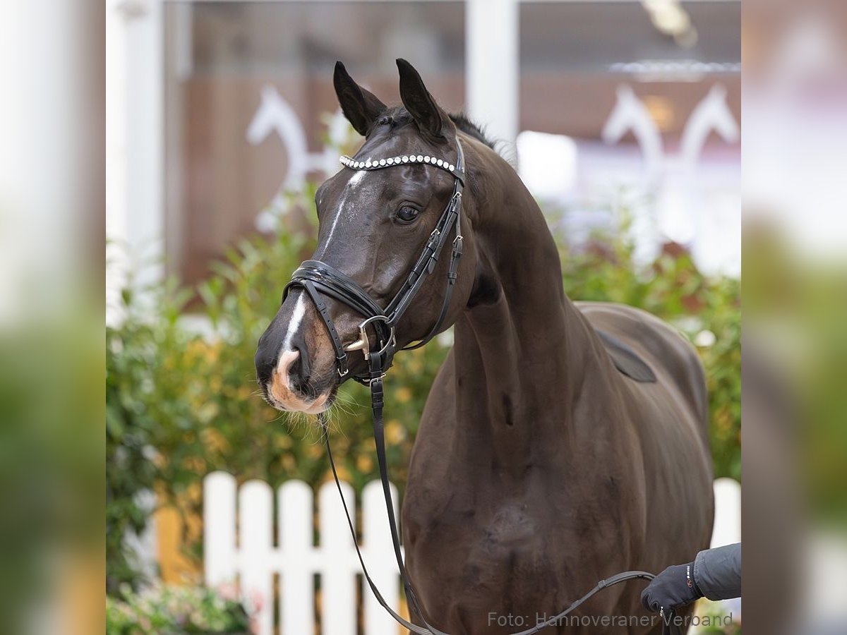 Goodman B displays a naturally elegant posture with beautiful, inherent self-carriage. Well-proportioned in side view, he is a well-prepared dressage prospect with good nerves and a solid foundation in riding. His half-brother Fred von Feuerstein was one of the most sought-after dressage horses at the Verden auction in April 2025 and has been successful in advanced dressage tests. The granddam Salome has produced four successful sport horses, including Hot Secret by Secret (competing internationally at Grand Prix level). **1st Generation** Auction horses: Fred von Feuerstein by Fusionist (Auction 2025); Ducati by Dancier (Auction 2024); HannPrA Diva by Damon (Auction 2021). **2nd Generation** Dressage sport horses: - Hot Secret 3 by Hotline (Competing internationally at Grand Prix with Birgit Wientzek Pläge, Grand Prix Special - international - 2021, Grand Prix Kür - international - 2021, Grand Prix - international - 2021, GPS - Grand Prix Special 2021, GPS - Grand Prix Special 2019, GP - Grand Prix 2019). - Fortuna of Fate by Floriscount (M** level with Elisabeth Brendler). Auction horses: - Dorie by Da Costa (Auction 2023). - HannPr Feine Deern / Feine Deern 28 by Floriscount (Auction 2019, Herwart von der Decken Show Verden 2018). - Quick as Lightning by Quasar de Charry (Auction 2015). Premium daughters: - HannPrA Fortuna VS by Falihandro (Herwart von der Decken Show Verden 2023). - HannPr Roseanne by Rocky Lee (Herwart von der Decken Show Verden 2020). - StPr Lady Gaga by Lauries Crusador (Herwart von der Decken Show Verden 2013). **3rd Generation** Dressage sport horses: - Luxor 141 by Lauries Crusador (S* level with Laura Huch). - Lauriger by Lauries Crusador (M** level with Christine Hilpert). **4th Generation** Dressage sport horses: - Hawaiianer by Hotline (S* with Julia Sarah Hamberger, FoVA 2009). - Domingo 505 by Davignon I (S* with Manfred Herrmann). - Davinciano MN by Danciano (M* with Maren Watermann). - Donna Diana / Donna Diana 34 by Davignon I (M with Kerstin Mehlis-Nennecke). Jumping sport horses: - Echt Gut by Earl (1.40 m with Andre Henkel, Auction 2009). Advanced dressage tests: - Latino Dancer 3 by Laudabilis (L level, Auction 2011). Auction horses: - Step by Step by Sandro Hit (Auction 2003). **5th Generation** Premium daughters: - StPr Wonderful by Werther. Mother: Lady Gaga Premium status: 1xIa Performance scores: - Dressage: 10/9 - Field test: - Trot: 7.50 - Canter: 8.00 - Walk: 7.00 - Average rideability: 8.25 - Average jumping: 7.00 Granddam: Salome Performance scores: - Field test: - Trot: 8.50 - Canter: 8.00 - Walk: 8.00 - Average rideability: 8.50 - Average jumping: 6.00 The horse is a Verden auction horse and will be auctioned online on January 25, 2026. From January 12 to January 25, the horse can be viewed and tried during daily public training sessions. The starting bid at the auction is €8,000.