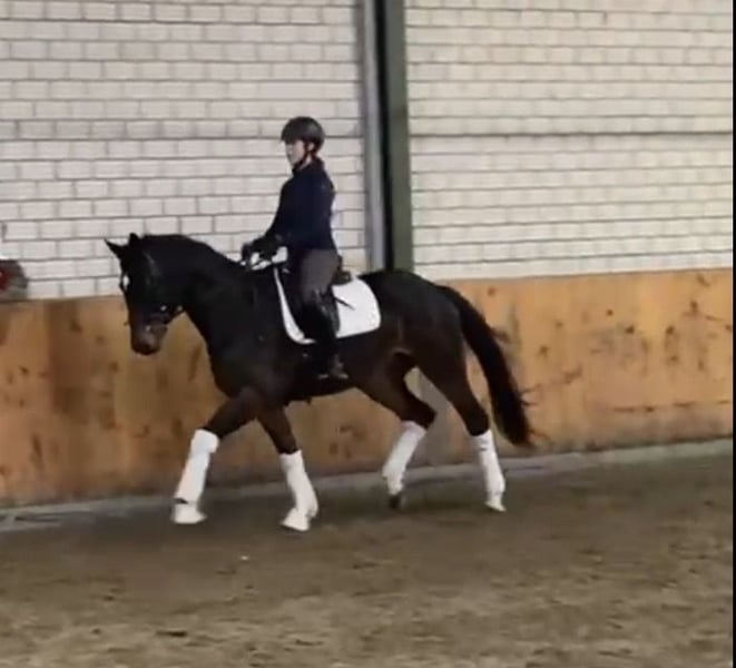 Zum Verkauf steht ein eleganter Hannoveraner Wallach, geboren im Jahr 2022. Mit seinem dunklen Braun ist er ein echter Blickfang. Das Pferd hat ein Stockmaß von 166 cm und ist ideal für den Dressursport geeignet. Ein talentierter und vielversprechender Nachwuchs, der sich durch seine Bewegungsqualität und sein angenehmes Temperament auszeichnet. Perfekt für ambitionierte Reiter, die einen zuverlässigen Partner suchen. Bei Interesse stehe ich gerne für weitere Informationen und eine Besichtigung zur Verfügung. Wir haben viele unterschiedliche Pferde zum Verkauf stehen.