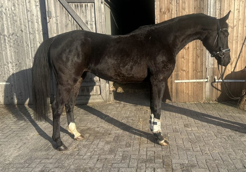 Dieser elegante Rappe besticht durch seine athletische Erscheinung und sein vielversprechendes Bewegungspotenzial. Als typischer Hannoveraner ist er ein aufmerksames Pferd und hat ein freundliches Wesen. Er ist schon an das Reitergewicht gewöhnt, wird aber jetzt aufgrund von Platz- und Zeitmangel verkauft. Mit seiner vielversprechenden Abstammung und seinem ausgeglichenen Charakter eignet er sich ideal für ambitionierte Reiter, die einen zuverlässigen Partner für die Zukunft suchen.