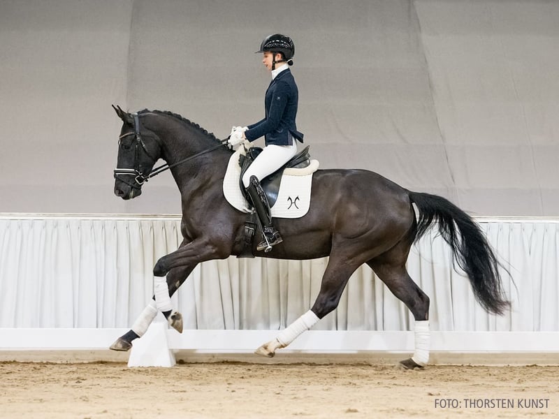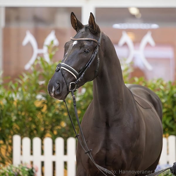 This horse is a Verden auction prospect and will be publicly sold online on January 25, 2026. From January 12th to the 25th, the horse can be viewed and tested daily during open training sessions. The starting bid at the auction is €8,000. Duke of Dark Chocolate is still in physical development but already shows promising movement qualities. A reliable sports partner with a healthy temperament. His dam, Wachau II, is also the grandmother of the S*-level successful Bordonno v. Bordeaux. The dam line is further influenced by Grand Prix-level sport horses such as Fernando v. Foundation (DRE: Grand Prix with Ellen Trouille) and Darboven v. Don Kennedy (DRE: Grand Prix with Wolfgang Schmitz-Heinen). **1st Generation** Dressage sport horses: Bordonno v. Bordeaux (DRE: S* with Mate Garai). Auction horses: Ein kleines Glück v. Escanto PS (FoVA 2025); Escalia v. Escanto PS (FoVA 2024); Skittle v. Sandro Hit (FoVA 2021); Montgomery K v. Morricone I (FoVA 2020: €16,000); Solist v. Sir Donnerhall I (FoVA 2018). Premium daughters: HannPr Bella v. Bordeaux; HannPr Bonita v. Bordeaux. **2nd Generation** Dressage sport horses: Caruso 511 v. Carabas (DRE: M** with Marlisa Hamann, FoVA 2007: €41,000). Premium daughters: StPr Wachau II v. Weltmeyer; StPr Compris v. Contendro I. **3rd Generation** Dressage sport horses: Fernando 716 v. Foundation (DRE: Grand Prix with Ellen Trouille, S*** level dressage test – Grand Prix de Dressage 2025); Darboven v. Don Kennedy (DRE: Grand Prix with Wolfgang Schmitz-Heinen, S*** level dressage test – Grand Prix de Dressage 2022, Young Horse Championship 2010, VA 2009: €130,000); Santo 98 v. Santini (DRE: Grand Prix with Kevin Bruin, S*** level dressage test – Grand Prix de Dressage 2015); Wiena/Wiena's Dream v. Weltmeyer (DRE: S* with Esther Soldi); Franco 82 v. Fürstenball (DRE: M* with Marcel Schächter); Si Jolie 9 v. San Amour I (DRE: M* with Annika Pfuderer, VA 2012); Fabrice 58 v. Fürstenball (DRE: M* with Maria Heindl). Jumping sport horses: Cicero 114 v. Carabas (SPR: 1.35 m with Andrea Engeler-Bading). Development tests in dressage: Hollister 11 v. Hampton (DRE: L, Young Horse Championship 2013); World Magic 9 v. Weltmeyer (DRE: L). Approved stallions: Approved stallion Sungino Perfect de Pad v. So Perfect (MS-Handorf 2024). Auction horses: Extrablatt v. Extreme U.S. (FoVA 2025); HannPrA Devi/Delilah v. Don Romance (FoVA 2021, Herwart von der Decken Show Verden 2024); Funkytown Gold v. Fürstenball (FoVA 2020: €21,500); Varese v. Vivaldi (FoVA 2019); Fantastico v. Fürstenball (FoVA 2017: €25,000); Daytona Beach v. Don Frederic (FoVA 2013). Premium daughters: HannPrA Dancing Queen/Dancing Queen 242 v. Danciero; HannPr Frida v. Fürstenball; StPr Hotlinesbest v. Hotline; StPr Santana v. Sandro Hit; StPr Sandrice v. Sandro Hit; StPr Wachau v. Weltmeyer; StPr Pamina v. Prince Thatch. **4th Generation** Dressage sport horses: Deville 2 v. Dauphin (DRE: M* with Angela Hölters); Dauphin Junior v. Dauphin (DRE: M* with Elena Firmery). Jumping sport horses: Convent/Convent 15 v. Converter (SPR: 1.35 m with Beeke Jankowski, VS: international M with Beeke Jankowski, L-level cross-country); Scott/Scott 32 v. Sunyboy (SPR: 1.35 m with Matthias Lucas); Chicago 90 v. Cellestial (SPR: 1.30 m with Luise Bayer); Waldfee/Waldfee 485 v. Waldstar (SPR: M with Wroblewski, Kira). Eventing sport horses: Convent/Convent 15 v. Converter (SPR: 1.35 m with Beeke Jankowski, VS: international M with Beeke Jankowski, cross-country: L). Development tests in dressage: So Edel v. Sensation (DRE: M* with Isabella Winklmeier); San Flamenco v. Swarovski (DRE: L). Development tests in jumping: Diaron Gold v. Diaron (SPR: L). Auction horses: Con Corazon v. Conen (VA 2016); Batida de Coco v. Bonifatius (FoVA 2010). Premium daughters: HannPrA Deichfee v. Danciano; HannPr Strandfee v. Swarovski; StPr Dahrlana v. Dauphin; StPr Wattenfee/Wattenfee 2 v. Wolkentanz; StPr Lanthana v. Lanthan. **5th Generation** Jumping sport horses: Awendan v. Amani (SPR: M with Traemann, Björn); Minou/Minou 34 v. Matcho (SPR: M with Rubarth, Bernd). Development tests in jumping: Wanja/Wanja 189 v. Wendehals (SPR: L). Premium daughter: StPr Desiree v. Dakar. **Dam:** Wachau II **Awards:** 3xIa. **ZL:** 13/12 **ZSP:** Reitpferde station test – Trot 8.50, Gallop 8.00, Walk 8.50, overall rideability 8.00 / overall jumping 6.88 **Grandmother:** Pamina **Awards:** 4xIa. **ZL:** 15/13 **ZSP:** Reitpferde station test – Trot 7.50, Gallop 7.50, Walk 7.50, overall rideability 8.00 / overall jumping 6.25