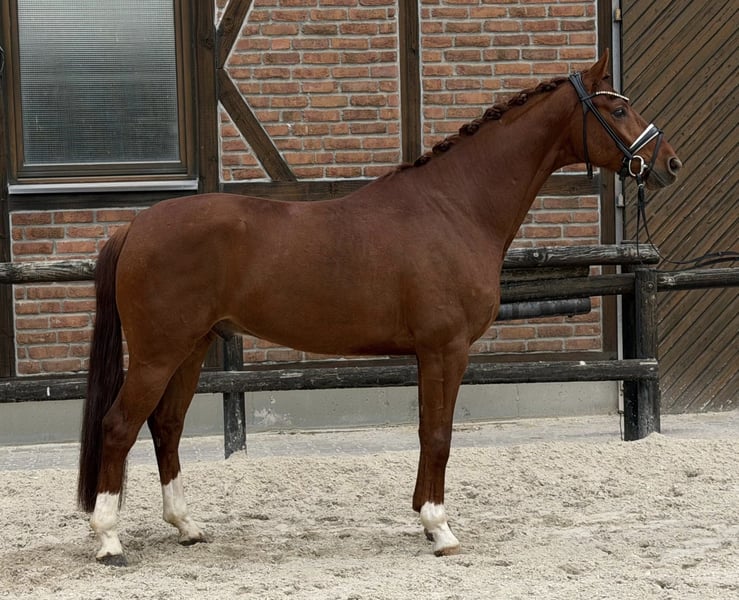 ⸻ Dressurbetonter Fuchswallach mit Qualität – unter Wert abzugeben Zum Verkauf steht ein moderner, 4-jähriger Fuchswallach aus interessanter Abstammung („Von und zu“) mit einem Stockmaß von ca. 1,68 m. Der Wallach ist bereits schonend angeritten und überzeugt durch sehr gute Grundgangarten mit viel Schwung, Takt und Elastizität. Besonders hervorzuheben ist seine natürliche Bergauf-Tendenz, die ihn für den Dressursport äußerst interessant macht. Er ist ein sehr sensibler, aufmerksamer Pferdetyp mit feiner Reaktion auf Reiterhilfen. In der richtigen Hand entwickelt er sich zu einem leistungsbereiten und ausdrucksstarken Partner. Gleichzeitig bringt er jedoch ein gewisses Maß an Anspruch im täglichen Umgang und in der Arbeit mit sich. Daher suchen wir für ihn einen erfahrenen, sicheren Reiter mit Gefühl, Konsequenz und ausreichend Zeit zur weiteren Förderung. Für Anfänger oder unsichere Reiter ist er nicht geeignet. Aufgrund seiner Sensibilität und seines anspruchsvollen Charakters wird er – trotz seiner hohen Qualität – unter Wert abgegeben. Ein passendes, förderndes Zuhause steht für uns klar im Vordergrund. Eine Ankaufsuntersuchung liegt vor, inklusive Röntgenbildern von Hals und Rücken. Bei ernsthaftem Interesse freuen wir uns über eine aussagekräftige Nachricht oder Telefonat.