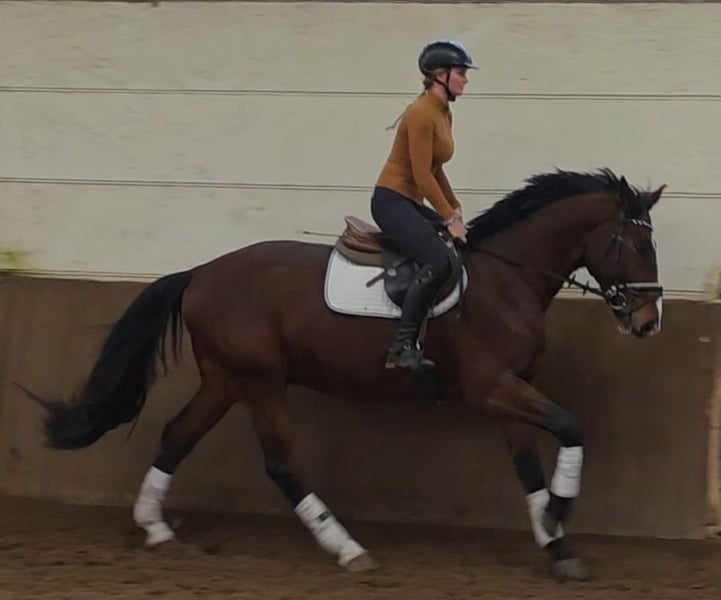 Tarok ist ein hübscher und ausgesprochen lieber Partner für Dressur, Freizeit und mehr. Für sein Alter ist er unglaublich cool und unerschrocken. Tarok hat eine sehr gute Dressurabstammung und durchaus tolle Bewegungen. Er lässt sich leicht an den Zügel stellen und vermittelt dem Reiter ein gutes und sehr sicheres Gefühl. Er lässt sich in den 3 Grundgangarten ordentlich reiten, absolviert erste kleine Sprünge unter dem Reiter und geht unerschrocken ins Gelände, sowohl in der Gruppe, als auch allein. Bei weiterer Förderung wäre Tarok sicher auf Turnieren erfolgreich. Aufgrund seines tollen Charakters verspricht er aber auch ein sehr zuverlässiges Freizeitpferd zu werden. Verladen, Hufschmied, Duschen... alles kein Problem. Auch mit anderen Pferden verträgt er sich gut. Er steht hier nachts in der Box und tagsüber in der Wallachgruppe auf dem Paddock. Tarok kennt aber auch reine Weidehaltung und würde sich sicher auch im Offenstall wohlfühlen. Ein Pferd, das einfach ein 5* Zuhause verdient hat. Übrigens lief er gerade super abgeklärt die Dressurquadrille beim Weihnachtsreiten mit Fast 4j Hann Wallach 1.69m Klinische Aku vorhanden Video: https://youtu.be/6LJSjibol3M?si=1GUdZI4462Sh2bhD Noch mehr Fotos, Videos und kleine Einblicke in den Alltag unserer Pferde gibt’s auf Instagram: [maresi_lange]. Schauen Sie gern vorbei und lernen Sie unsere Vierbeiner schon vorab ein bisschen kennen. You can find more photos, videos and little insights into the everyday life of our horses on Instagram: [maresi_lange]. Feel free to take a look and get to know our horses a bit better in advance.“ Weitere Pferde auf meiner Homepage MaresiLange.de oder auf Anfrage. Die Beschreibung des Pferdes beruht auf subjektiven Eindrücken und Erfahrungen unsererseits und ist keine Beschaffenheitsvereinbarung und Zusicherung von Eigenschaften. Probereiten erfolgt auf eigene Gefahr. Verkauf erfolgt im Auftrag. Für das Vorstellen/ Probereiten des Pferdes erlauben wir uns eine Aufwandsentschädigung in Höhe von 30 Euro zu berechnen. Diese wird natürlich bei Kauf des Pferdes verrechnet.