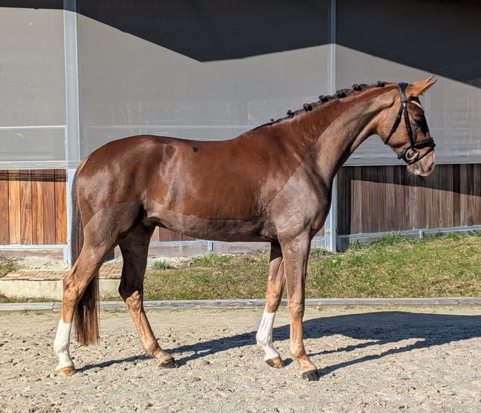 Wir bieten hier aus eigener Zucht unseren jetzt 4j. Wallach an. Elliot besticht jeden Tag mit seinem tollen Charakter und seiner hervorragenden Rittigkeit. Mit einer tollen Aufrichtung und 3 sehr guten GGA ausgestattet, ist er für die kommende Turniersaison startklar. Absolut brav im Umgang und beim Reiten. Die Mutter ist selbst siegreich in Dressurprüfungen der Kl. M gewesen und würde bis S ausgebildet. Sehr gute Röntgenbilder inkl. Rücken und Hals liegen vor. Bei Interesse gerne melden 0171 3493348
