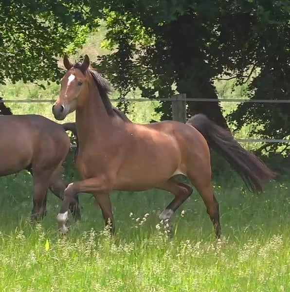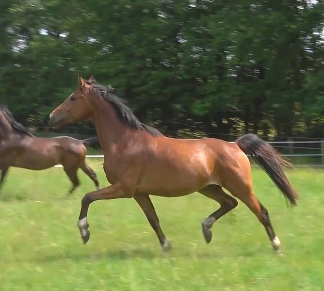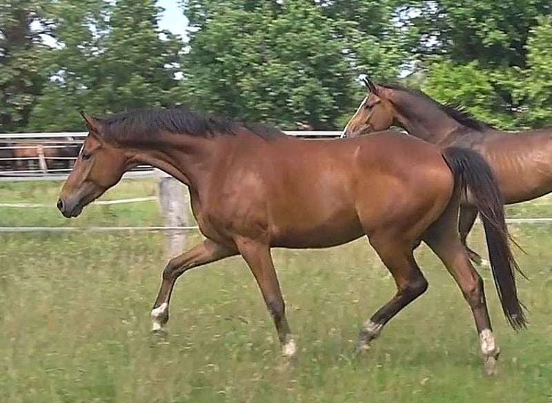 Tintoretto is a beautiful, very affectionate and athletic gelding by TikTok (Glock's Toto Jr. x Flemmingh x Nimmerdor), born on 09.07.22, out of our H.Pr.St. Desideria by Desiderio x Weltmeyer. He is the brother of the champion foal of the 2021 foal show at Klosterhof Medingen and several auction foals. Two brothers are directly placed and successful in riding horse tests. He comes from the proven mare line of Jablunka, which has already produced numerous auction horses/foals, state premium mares, and licensed stallions. Toto Jr. was recently awarded the Grande Prize by the Hanoverian Association. His teeth were done in April 2025, and a radiographic check including neck and back without findings from 27.08.25 is available. You are welcome to meet us and our horses in person; we look forward to your visit!