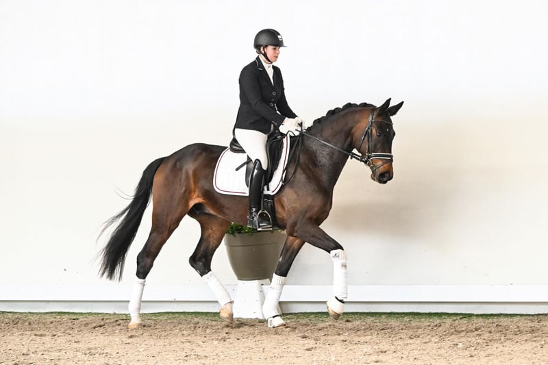 Valdini is a four-year-old gelding who is still very much in the midst of his development and has by no means reached the full extent of his potential. A highly appealing young horse who continues to gain expression and quality with each passing day. Even at this stage, he impresses with an expressive, rhythmical trot and an uphill canter, providing an excellent foundation for his further training. His movements are characterized by natural elasticity and create a harmonious and pleasant overall picture. A horse that immediately captivates the observer with his presence and charisma. Particularly noteworthy is his character: well-balanced, friendly, and always people-oriented. A truly reliable partner in daily handling, who will bring great enjoyment to his rider. His pedigree is equally outstanding: his sire, Valdiviani, trained under Isabell Werth, is known for rideability, expression, and exceptional athletic potential. His dam, Sansiera, has already produced two licensed sons and descends from a highly successful dam line. In the third generation appears the State Premium mare Reine Freude, one of the most influential mares of her line, who produced, among others, the NRW Champion stallion and foundation sire Fidertanz. Valdini thus combines all the attributes for a successful future: correct conformation, high-quality movement, and a character one could wish for. A young prospect with tremendous potential—ideal for riders who take pleasure in developing a talented and genuine partner.
