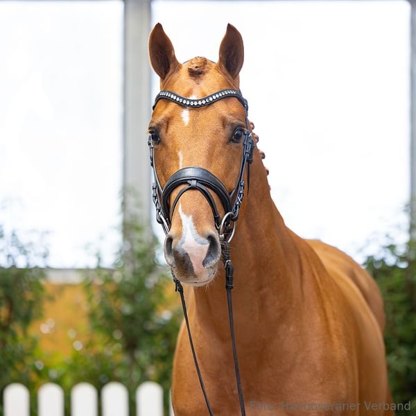 Das Pferd ist ein Verdener Auktionspferd und wird am 18.04.2026 onlive versteigert. Vom 6.04. bis zum 18.04. kann das Pferd jeden Tag beim öffentlichen Training besichtigt und ausprobiert werden. Das Startgebot bei der Versteigerung ist 8.000 Euro. Sony ist ein extravaganter Dressurwallach mit sportlich geprägter Blutlinienkombination. Mit Ellen Bruun platzierte er sich bereits an zweiter Stelle in einer Reitpferdeprüfung und tritt damit in die Fußstapfen seiner Halbschwester Freak Me Out v. Floriscount, die mit Kristine Möller-Engel in Dressurpferdeprüfungen der Klasse M siegreich ist. Großmutter StPr Passion stellte die Sportstute Fit for Fun v. For Compliment, erfolgreich im Grand Prix mit Anna-Katharina. Auch Goldmeyer (Grand Prix mit Anne Torp Madsen) und Giaccomo (Grand Prix mit Andrea Baumgart) zeichnen diesen erfolgreichen Mutterstamm aus. Sportname: Sony 34 Sporterfolge: RPF: 1/2. 1. Generation Aufbauprüfungen Dressur: Freak me Out v. Floriscount (DRE: M mit Kristine Möller-Engel). 2. Generation Sportpferde Dressur: Fit for Fun 16 v. For Compliment (DRE: Grand Prix mit Anna-Katharina Gerber,Dressurprüfung Kl. S*** - Grand Prix Kür - 2023,Dressurprüfung Kl. S*** - Grand Prix Kür - 2023,Dressurprüfung Kl. S*** - Grand Prix Kür - 2021,Dressurprüfung Kl.S*** mit Piaffe und Passage 2018,Dressurprüfung Kl.S*** mit Piaffe und Passage 2018,Dressurprüfung Kl.S*** mit Piaffe und Passage 2018). Aufbauprüfungen Dressur: Santa Cruz 43 v. Sir Donnerhall I (DRE: L). Auktionspferde: Fidelio v. Floriscount (VA 2025). 3. Generation Sportpferde Dressur: Bereniece v. Bonifatius (DRE: M** mit Sabine Steinborn). Aufbauprüfungen Dressur: Flower/Fine Flower 2 v. Fidertanz (DRE: L). Besondere Sportergebnisse: Dario-Fo v. Dimaggio (Championat f. Reitpferde 2008,VA 2009). Auktionspferde: Be Happy v. Bonard de Charry (VA 2017); Lanciano v. Lauries Crusador (FoVA 2008); De Rossio Grande v. Don Crusador (VA 2011); Ryan's Magic v. Rubinstein I (VA 2003). Bes. Prämientöchter: StPr Passion v. Prince Thatch. 4. Generation Sportpferde Dressur: Goldmeyer v. Galvano (DRE: Grand Prix mit Anne Torp Madsen,Dressurprüfung Kl. S*** - Grand Prix Special - 2016,Dressurprüfung Kl. S*** - Grand Prix de Dressage 2016,Dressurprüfung Kl. S*** - Grand Prix Special - 2016); Giaccomo 3 v. Grande (DRE: Grand Prix mit Baumgart,Andrea Dr.,Championat für Reitpferde m.M. 1986,Championat für Reitpferde m.M. 1985,Championat für Reitpferde m.M. 1985,VA 1984); Don Hitmeyer v. Diamond Hit (DRE: S*** mit Carolin Heckenberger); Byzanz 11 v. Benicio (DRE: S** mit Nikolaus Torklus); Rubin 550 v. Rosentau (DRE: S** mit Susanne Rommel); La Grandessa v. Leibniz (DRE: S** mit Friederich,Irena); World Play v. World Cup I (DRE: S** mit Ramschütz,Silke); Zuperior v. Zack (DRE: S* mit Henriette Schmidt); Quuno v. Quaterback (DRE: S* mit Christoph Schönherr,VA 2012); Donavan 30 v. Dressage Royal (DRE: S* mit Clarissa Dennert); Weltlady/Charlottenhof`s Weltlady v. Weltmeyer (DRE: S* mit Stephan Köberle); Lemon Girl v. Lemon Park (DRE: S mit Winter,Heike); Elite Salsa de Jeu/Salsa de jeu v. Serano Gold (DRE: M** mit Jasmin Kreipl); Dirty-Diana v. Decamerone (DRE: M** mit Linda Kulb); gek. Hengst Don Laurie II/Tannenhof's Don Laurie II v. Don Schufro (DRE: M** mit Nicole Teichmann,Verden 2005,HM 2005); Screenshot S v. Secret (DRE: M* mit Pauline Samrei); De Noblesse v. Don Nobless (DRE: M* mit Nicole Louven); Ferdinando-Finissimo v. Fiorissimo (DRE: M* mit Heike Schmidt-Bosse); Gill Flanell v. Grey Flanell (DRE: M* mit Cora Bachmann); Renoir l'unique v. Rascalino (DRE: M* mit Tanja Illges-Holl); Donna Laura v. Don Schufro (DRE: M* mit Nicole Teichmann); Well Done 46 v. Weltmeyer (DRE: M* mit Nina-Vanessa Henke). Sportpferde Springen: Laurentio S v. Landor S (SPR: 1,35 m mit Axel Freitag); Singular Lady v. Singular Joter I (SPR: M mit Andreas Tölle); Graziano 15 v. Grande (SPR: M mit WIENFORT,SVEN). Aufbauprüfungen Dressur: Santa Catalina/Santa Catalina 3 v. Sarotti Mokka Sahne (DRE: M mit Laura Stiller); gek. Hengst Bonhoeffer/Bonhoeffer 2 v. Bon Coeur (DRE: M mit Catja Thomsen,Verden 2021,HM 2021: 300.000 €); Ferdi Fuchs 2 v. For Gold (DRE: M mit Nathalie Arenhövel); StPr Bella Belicia v. Belissimo M (DRE: M mit Ann-Kathrin Wilting); Diabella Gold v. Don Olymbrio L (DRE: L); Florentine 137 v. For Dance (DRE: L); Different 5 v. Daytona (DRE: L); HannPr Fürstin Grande v. Fürst Romancier (DRE: L); Safari 51 v. San Amour I (DRE: L); Whisper CH v. World Cup I (DRE: L). Aufbauprüfungen Springen: Latina 216 v. Le Primeur (SPR: 1,30 m mit Kai Schrammel); Blayde v. Balou du Rouet (SPR: L). Aufbauprüfungen Gelände: Boracay v. Belissimo M (Gelände: L*). Besondere Sportergebnisse: gek. Hengst Weltmeyer/WELTMEYER v. World Cup I (Championat für Reitpferde m.M. 1987,Verden 1986,HM 1986,Sieger Körung Verden 1986,Freiherr von Stenglin-Preis Verden 1988,Bester Hengst des Jahrgangs 1988,Sieger DLG Frankfurt 1989,Hannoveraner Hengst des Jahres 1998). gekörte Hengste: gek. Hengst Vivaldinho v. Valdiviani (MS-Handorf 2025); gek. Hengst Alphabeat v. Ampere (NLD) (Dänemark 2014); gek. Hengst Don Laurie I/Don Laurie v. Don Schufro (Oldenburg 2001). Auktionspferde: Visconti v. Von Und Zu (VA 2025); Zündstoff v. Zoom (FoVA 2020); Fidermeyer v. Fidertanz (VA 2023); Catch me v. Conthargos (FoVA 2019); Der Allwördener v. Don Index (VA 2019); Fred v. Franziskus (VA 2020); Celeste-Laura v. Chequille (VA 2015); Quandam S v. Quaterback (VA 2013); Sarkozya/Sinka v. Sarkozy (FoVA 2009); Summertime S v. Samarant (VA 2011); Cataldo v. Chico's Boy (VA 2008); Winnipeg 241 v. Weltmeyer (VA 2004); Expose v. Escudo II (FoVA 1998). Bes. Prämientöchter: HannPrA Remarkable S v. Revolution; HannPr Fleur v. For Romance I; HannPr Campera v. Carabas; StPr Freiheit v. Fairbanks; HannPr Sunday Grande v. Stedinger; HannPrA Balbina Lerup v. Belissimo M; StPr Ballerina Lerup v. Belissimo M; StPr Donna-Laura v. Don Schufro; StPr Laura v. Lauries Crusador; StPr
