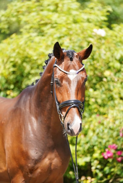 Charming young horse with that special something 4-year-old gelding with striking markings and potential for dressage sport This young gelding is memorable – not only because of his sweet, distinctive white nose but also thanks to his three very good basic gaits and his pleasant rideability. He has been gently started under saddle and is currently on his way to the dressage horse A-level. Light in the hand, comfortable to sit, and always eager to do everything right – this is how he presents himself day after day under the saddle. A great horse for ambitious leisure riders and for competition sport. He is also a suitable partner for riders who enjoy further training of a talented dressage horse. In daily handling, he always shows himself to be well-behaved, friendly, and uncomplicated – both in the stable and in the herd. No emails, only calls Information without guarantee Price plus VAT