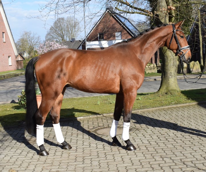 Coś wyjątkowego! Bardzo ekspresyjny ogier, wyposażony w dużą mechanikę ruchu, który prezentuje swoje talenty w najlepszy możliwy sposób. To wzorowy koń, który każdego dnia chętnie współpracuje, będąc przy tym grzeczny i łatwy w obsłudze. Połączenie doskonałej jakości ruchu i idealnego charakteru czyni z Faniro idealnego konia do szkolenia. Aktualny, bardzo dobry przegląd techniczny (TÜV) jest dostępny.