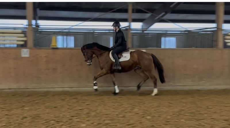 Te koop staat een 3-jarige bruine ruin met een actuele stokmaat van ongeveer 170 cm. Hij is aangezet, toont zich daarbij braaf in de omgang en werkt gemotiveerd en evenwichtig onder het zadel. Hij loopt al in alle drie de basisgangen en presenteert zich met goede bewegingen en veel potentieel voor de toekomst. Zijn afstamming Fusionist / Shrek xx belooft sportieve aanleg en bereidheid tot presteren. Ideaal voor iemand die een jong paard zoekt voor verdere opleiding. 📏 Stokmaat: ca. 170 cm 🎨 Kleur: Bruin 🧬 Afstamming: Fusionist / Shrek xx 📋 Keuring: Geen actuele keuring aanwezig