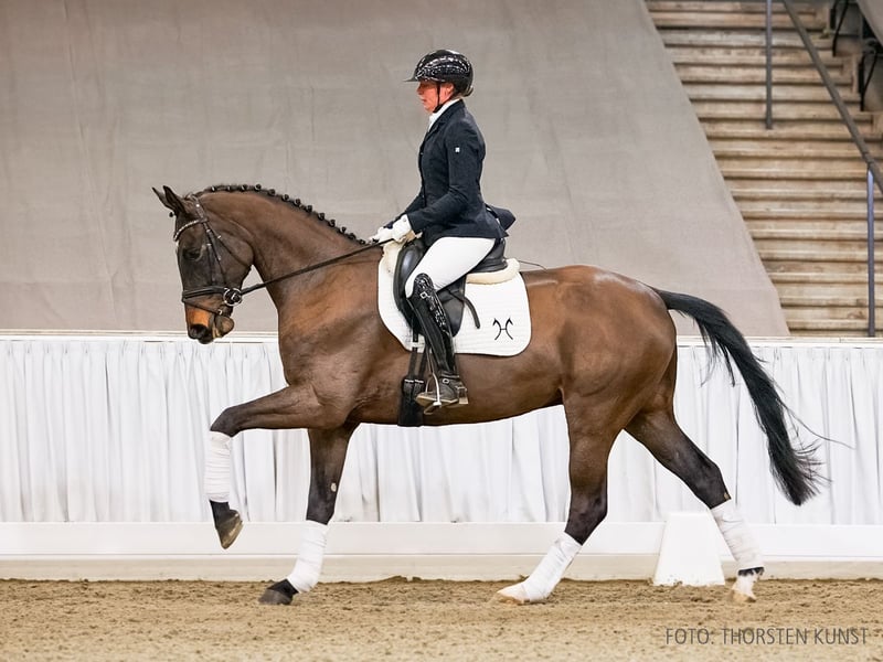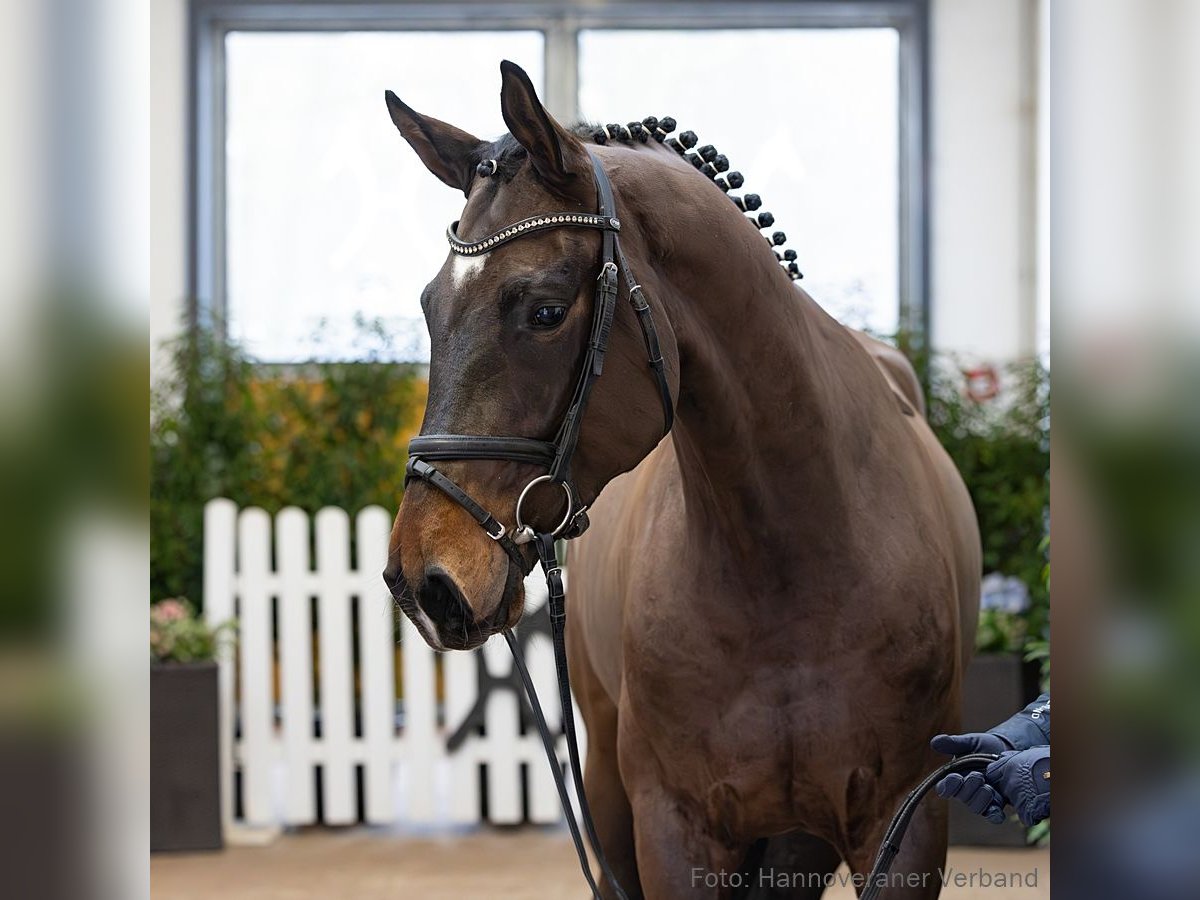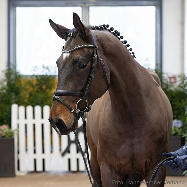 Das Pferd ist ein Verdener Auktionspferd und wird am 18.04.2026 onlive versteigert. Vom 6.04. bis zum 18.04. kann das Pferd jeden Tag beim öffentlichen Training besichtigt und ausprobiert werden. Das Startgebot bei der Versteigerung ist 8.000 Euro. Dancito ist ein noch in der körperlichen Entwicklung stehender Dressurnachwuchs. Mit ausgewählten Leistungsgenen setzt er die Aufgaben mit hoher Auffassungsgabe um. Mutter Franzi, ein ehemaliges Auktionsfohlen, entstammt einem sportlich erfolgreichen Mutterstamm, vertreten durch FBW Despereaux v. Don Diamond (Grand Prix mit Emely van Loon), GR Dorian Gray v. Diamond Hit (Grand Prix mit Matthias Vatter) und den Hengst Ligety v. Lord Loxley (S** mit Marie Burlein). Zuchtname: Dancito 2. Generation Auktionspferde: Franca del Sol/Fleur de Coeur 7 v. Franziskus (FoVA 2014,VA 2018); Franzi/Frodehilde v. Franziskus (FoVA 2013); HannPr Francesca/Francesca 64 v. Franziskus (FoVA 2012). 3. Generation Aufbauprüfungen Dressur: Del Prado v. Del Piero (DRE: L). Bes. Prämientöchter: StPr Bianca/Blütenstaub v. Belissimo M. 4. Generation Sportpferde Dressur: FBW Despereaux v. Don Diamond (DRE: Grand Prix mit Emely van Loon,Dressurprüfung Kl. S*** - Grand Prix de Dressage 2025,Dressurprüfung Kl.S*** mit Piaffe und Passage 2024,Dressurprüfung Kl.S*** mit Piaffe und Passage 2024,Dressurprüfung Kl. S*** - Grand Prix de Dressage 2023,Dressurprüfung Kl. S*** - Grand Prix Kür - 2023,Dressurprüfung Kl. S*** - Grand Prix de Dressage 2023,Deutsche Meisterschaft der Junge Reiter Dressur -Wertung- 2022,Deutsche Meisterschaft der Junge Reiter Dressur -Wertung- 2021,Deutsche Meisterschaft der Junioren Dressur -Wertung- 2019); FBW Don Doppio v. Don Diamond (DRE: Grand Prix mit Jan Holger Holtschmit,Dressurprüfung Kl.S*** mit Piaffe und Passage 2025,Dressurprüfung Kl.S*** mit Piaffe und Passage 2024); GR Dorian Gray v. Diamond Hit (DRE: Grand Prix mit Matthias Vatter,Dressurprüfung Kl.S*** mit Piaffe und Passage 2019); gek. Hengst Ligety/Ligety 2 v. Lord Loxley (DRE: S** mit Marie Burlein,Bundeschampionat f. Reitpferde 2013,Warendorf 2013); Bonifatius 8 v. Belissimo M (DRE: int. S* mit Siri Thelle Thönnesen); Equidiamonds Bright Bellini v. Belissimo M (DRE: S** mit Leonie Moll,Championat f. Reitpferde 2014); DSP Fino Royal v. For Romance I (DRE: S** mit Anna-Louisa Fuchs); Scaramanga 5 v. Sandro Hit (DRE: S** mit Susanne Gütlbauer); Felix 257 v. Werther (DRE: S** mit Yoshida,Akiko); Tigolas v. For Romance I (DRE: S* mit Heike Schmidt-Bosse); Felicity Rose v. Fürst Piccolo (DRE: S* mit Saskia Fontanive); Festina/Festina 31 v. Fidertanz (DRE: S* mit Steffen Frahm); StPrA Rihanna/Rihanna 2 v. Rohdiamant (DRE: S* mit Isabelle Spielmanns,Bundeschampionat f. Reitpferde o.M. 2007,Championat f. Reitpferdeohne Mindestleistung Kat.A 2006); StPrA Wynona/Wynona 31 v. Weltgeist (DRE: S* mit Christina Harvey-Duwe,VA 2004); Fortissimo 24 v. Fabriano (DRE: S mit Adamczyk,Christiane); So Important v. Sir Donnerhall I (DRE: M** mit Eva-Maria Erber); Romeo Royal v. Royal Diamond (DRE: M** mit Anna-Lena Simon,VA 2006); Forever my Girl v. Fürstenball (DRE: M* mit Ann-Katrin Winkler); Fine Francesca v. Fürst Piccolo (DRE: M* mit Bianca Nowag-Aulenbrock); Bellamy 11 v. Bentley (DRE: M* mit Francesca Geri); Last Hero v. Lancaster (DRE: M* mit Brigitte Treiber). Sportpferde Springen: Subaru v. Sandro Hit (SPR: 1,30 m mit Steffen Burmeister). Aufbauprüfungen Dressur: gek. Hengst Fürstenberg/Fürstenberg 17 v. Fürstenball (DRE: M mit Falk Stankus,Vechta 2014,VA 2013); Desert Rose/EquiDiamonds Desert Rose v. Damon Hill (DRE: M mit Melanie Mayer); gek. Hengst Dresseur v. Diamond Hit (DRE: M mit Heiner Schiergen,München-Riem 2005); Freeman 80 v. Floriscount (DRE: L); Fleur de Lys/Equi diamonds Fleur de Lys v. Fürst Piccolo (DRE: L); Skyline/Skyline 55 v. Sir Donnerhall I (DRE: L); Kitano 6 v. Köpenick (DRE: L); Anastasia/Anastasia 95 v. Alabaster (DRE: L,Championat für Reitpferde o.M. 2003,Championat für Reitpferde o.M. 2002). Besondere Sportergebnisse: Doreen 256 v. Diamond Hit (Championat f. Reitpferdeohne Mindestleistung Kat.A 2007); Saigon/Saigon 25 v. Sandro Hit (Bundeschampionat f.Reitpferde m.M. 2004,VA 2004: 83.000 €); Anakonda/Alegria 6 v. Alabaster (Championat für Reitpferde m.M. 1998). Auktionspferde: Guinness II v. Glückspilz (VA 2001); Fluco v. Werther (VA 1996); Werte Dame/Werte Dame v. Werther (VA 1989,Louis Wiegels-Schau Heiligenfelde 1989). Bes. Prämientöchter: StPr Whity's Girl v. White Magic; StPr Grace/Grace 151 v. Glückspilz; StPr Wie Franca/Franca 22 v. Werther (Louis Wiegels-Schau Hohenhameln 1997). 5. Generation Sportpferde Dressur: France Belli v. Franziskus (DRE: S*** mit Christine Dos Santos); von Quaterhall v. Quaterhall (DRE: S*** mit Paula Matute Guimón,GP - Grand Prix 2024,VA 2014); v. Sir Donnerhall I (DRE: S*** mit Emily Miles); Vitanova v. Vitalis (DRE: S** mit Lisa-Sophie Meier); Don Compañero v. Don Index (DRE: S* mit Franziska Binder); HannPrA Danzanova v. Dancier (DRE: S* mit Lisa-Sophie Meier); Dagobert 125 v. Dancier (DRE: S* mit Juliane Fehl); West Virginia/West Virginia 56 v. Worldly (DRE: S* mit Andrea Babic,VA 2005); Don Amigo 11 v. Don Index (DRE: M** mit Sina Flege); Luy Garoche v. Locksley II (DRE: M** mit Tina Kayser); gek. Hengst Wincento 7 v. Worldly (DRE: M** mit Fritz Fleischmann,Verden 2005,VA 2007,HM 2005); Dianova/Dianova K v. Dancier (DRE: M* mit Anne-Marie Schubert); MED- Lissy v. Lissaro (DRE: M* mit Ann-Sophie Mayr,SPR: 1,30 m mit Ann-Sophie Mayr); La Rose 8 v. Londonderry (DRE: M* mit Larissa Kunz); Qku v. Quasar de Charry (DRE: M* mit Stefanie Bodin); Don Juan de Marco 2 v. Don Marco (DRE: M* mit Jana Aschbermer); Born in Spring v. Baroncelli (DRE: M* mit Birgit Finken); Fürst Valentino v. Fürst Heinrich (DRE: M* mit Katja Roewer); Barbara/Big Babara v. Brandenburg (DRE: M* mit Mercedes Busse); Night Star 13 v. Natiello (DRE: M mit Marina Bürkner); StPr Watt Nuh v. Weltmeyer (DRE: M mit Elendt-Meier,Ute,