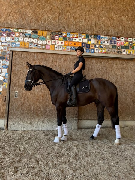 Elegant Hanoverian gelding with excellent pedigree for sale. This stunning dark bay Hanoverian gelding, born in 2022, is available. Standing at 16.1 hh, he combines impressive size with a refined appearance. He impresses with his friendly nature, quality movement, and eagerness to learn. The gelding has a fantastic character, is well-behaved in handling, quick to learn with a good work ethic, and shows potential for the big arena. Please feel free to contact me for further information or to arrange a viewing. A visit can be scheduled by appointment.