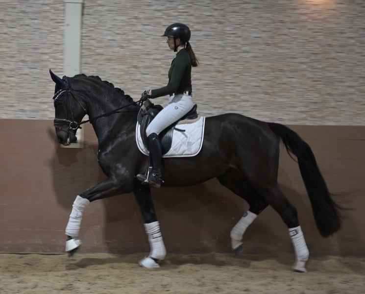Dear Interested Parties, To arrange a trial ride, please send me a WhatsApp message. For further questions, I am available via WhatsApp during the day, and you can reach me best by phone between 4 p.m. and 7 p.m. I look forward to hearing from you. www.angelina-devittorio.de ⭐️Fidelio⭐️ Age: 3 years (2022) Height: approx. 16.1 hh Pedigree: Fidertanz x Desperados Training level: Basic riding horse level Health: Good X-rays available For sale is a modern, long-legged son of Fidertanz out of a Desperados dam. This highly talented young horse impresses with three outstanding gaits: an impressive uphill canter, elastic trot mechanics with an active hind leg, and a very good quality walk. Additionally, he has an impeccable character and a heart of gold! He is perfectly suited as an education horse with excellent prospects for the big arena. His lovable nature, rideability, and mental clarity make him a wonderful partner in daily handling and riding. Very enjoyable to ride and already well-balanced, absolutely suitable for amateurs (of course, some young horse experience is necessary due to his age). This is an exceptional young horse with a great character, possessing the potential to shine at the highest level. Since Fidelio tends to nip when eating concentrate feed, he is being sold below value. No issues, no previous health problems, good X-rays available. ⚜️Phone: 0171-3438949 ⚜️Email: a.devittorio@web.de ⚜️https://www.ehorses.de/angelinadevittorio Facebook and Instagram: Angelina De Vittorio