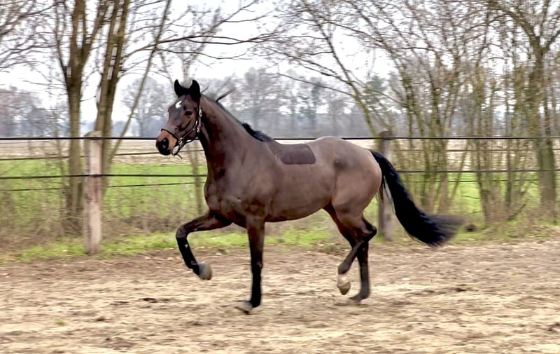 Zum Verkauf steht ein junges, talentiertes Nachwuchspferd, das sich noch am Anfang seiner Ausbildung befindet. Trotz seines jungen Alters besticht er durch ein absolut liebenswürdiges und abgeklärtes Wesen – Unarten sind ihm völlig fremd. Auch beim Auswärtstraining zeigt er Nervenstärke und ist stets brav und gelassen, egal unter welchen Bedingungen. Er ist ausgesprochen arbeitswillig und motiviert, lernt schnell und überzeugt durch ein klares, aufmerksames Köpfchen. Sein enormes Potenzial ist für jeden, der Freude an der Ausbildung eines jungen Pferdes hat, sofort erkennbar. Außerdem ist er absolut verträglich mit anderen Pferden, kennt Hunde und Trecker und zeigt sich sowohl verlade- als auch schmiedefromm. Ein aktueller TÜV mit Rückenbildern ohne Befunde liegt vor und rundet das sichere Gesamtpaket ab. Dieses Pferd ist die ideale Wahl für alle, die ein lernbereites, liebevolles und perspektivreiches Pferd suchen.