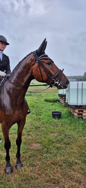 Charmant, rittig und mit echter Bühnenpräsenz: Dieser 4-jährige Wallach beeindruckt mit viel Schwung, energischem Hinterbein und einer natürlichen Ausstrahlung, die sofort ins Auge fällt. Optisch ein echter Hingucker. Bereits in Dressurpferde A platziert, zeigt er sich auf dem Weg in die Dressurpferde L für sein Alter bemerkenswert lektionssicher, sehr lerngierig und stets aufmerksam beim Reiter. Gleichzeitig bleibt er der perfekte Allrounder: Er geht gerne und brav ins Gelände, springt mit sehr guter Technik und Übersicht und macht dabei immer motiviert mit. Im Umgang ist er ein wahrer Schatz – gelassen, menschenbezogen und klar im Kopf, aber mit dem nötigen Go, wenn’s drauf ankommt. Genau diese Mischung macht ihn zu einem Herzenspferd für Groß und Klein und prädestiniert ihn auch für jüngere, ambitionierte Reiter/innen mit guter Anleitung. Ein guter TÜV aus September liegt vor und rundet dieses attraktive Gesamtpaket ab. Neugierig geworden? Videos, weitere Infos und Besichtigung nach Absprache – dieser junge Gentleman wartet darauf, Ihr Herz zu erobern.